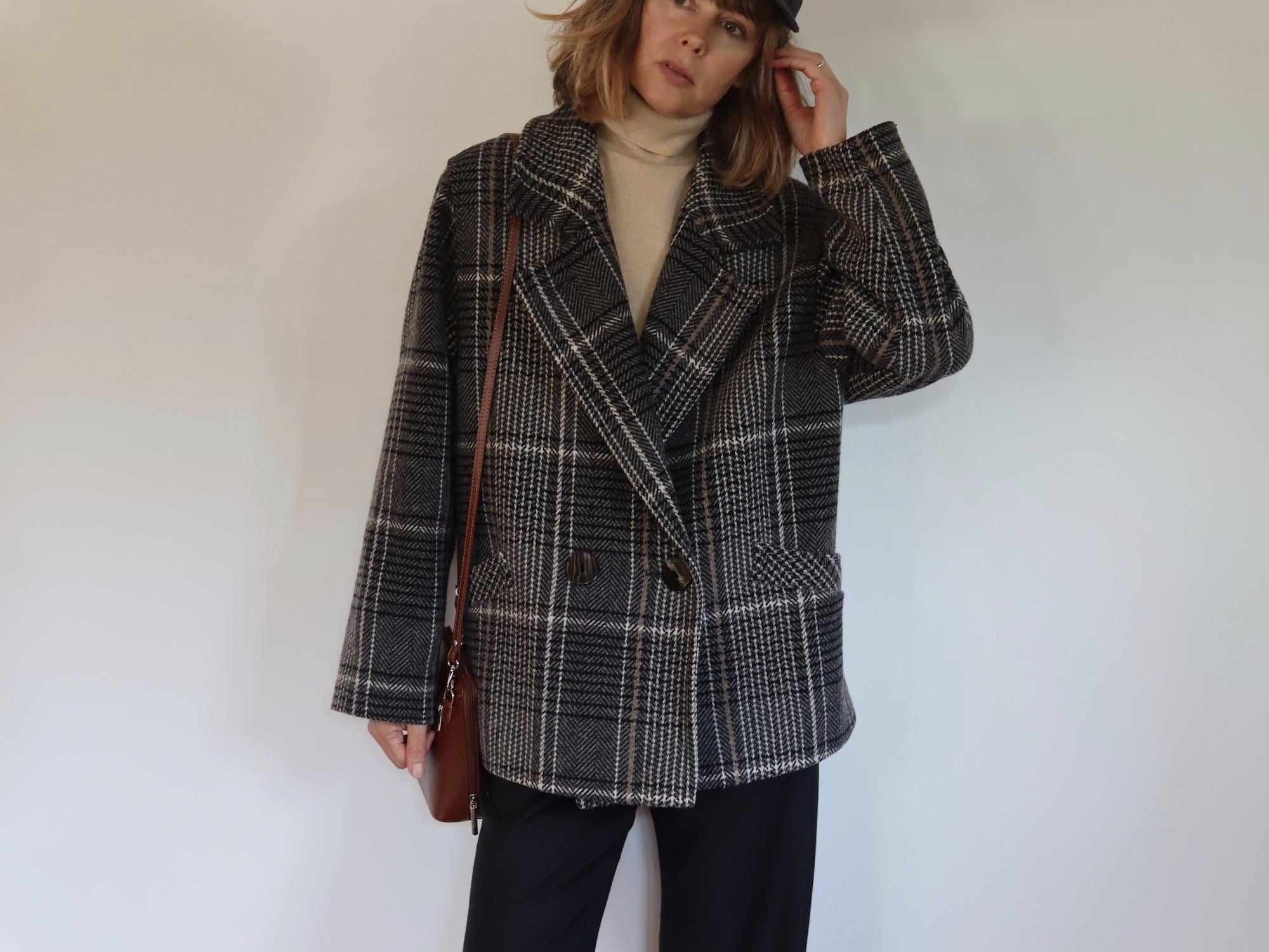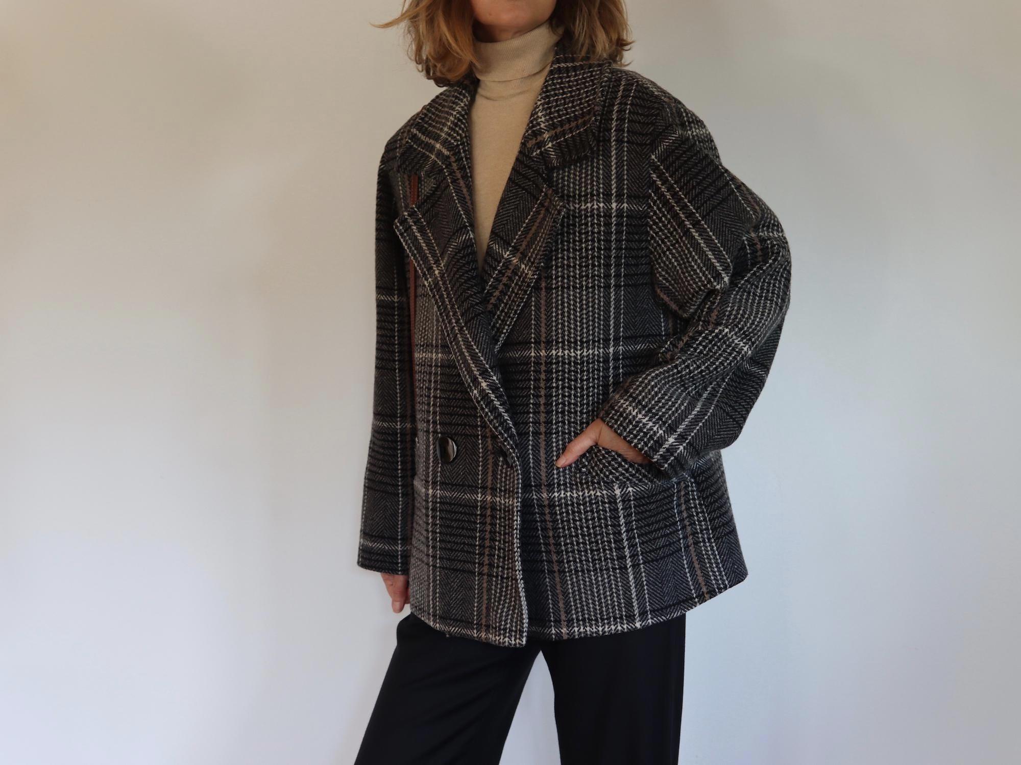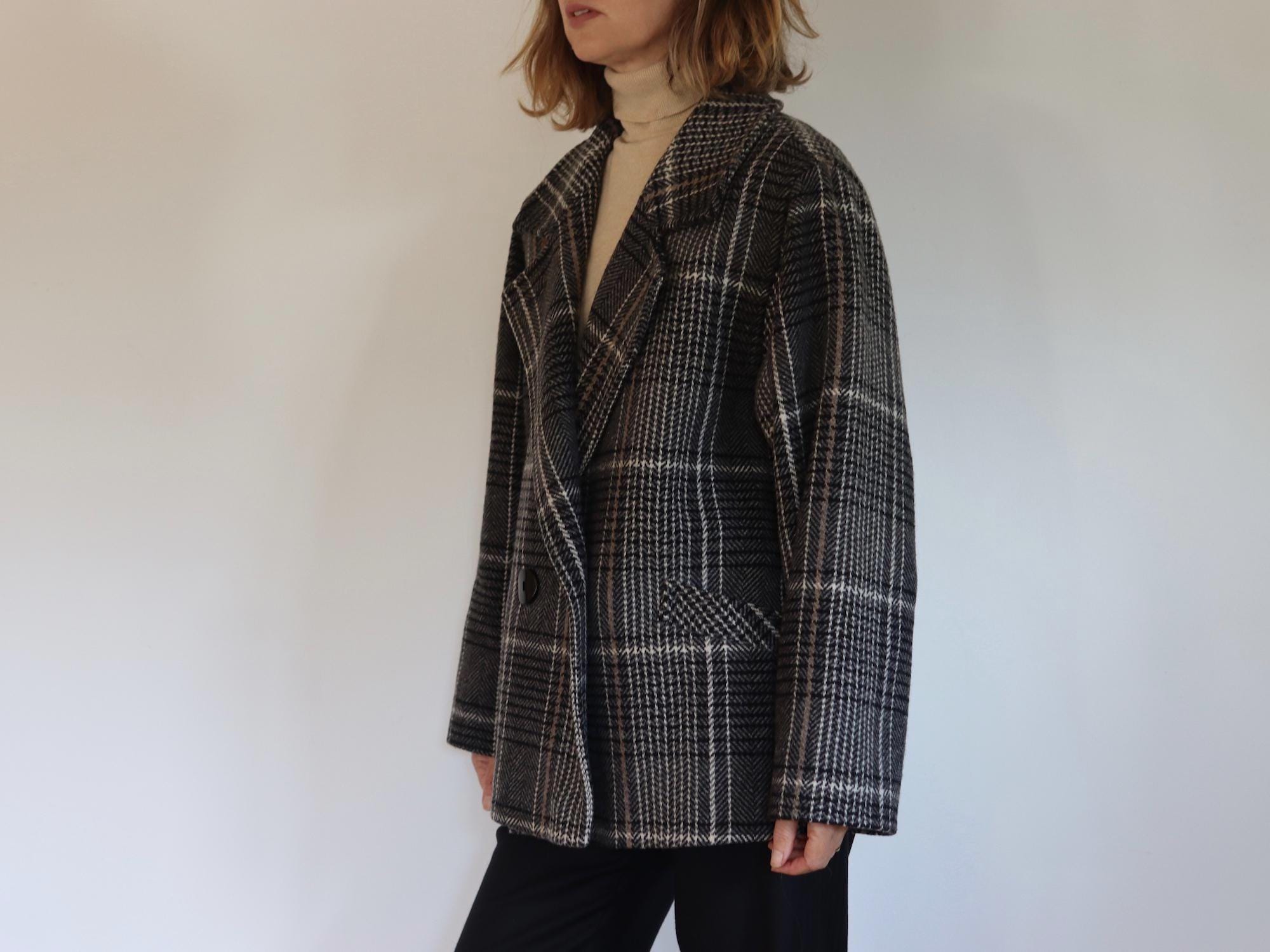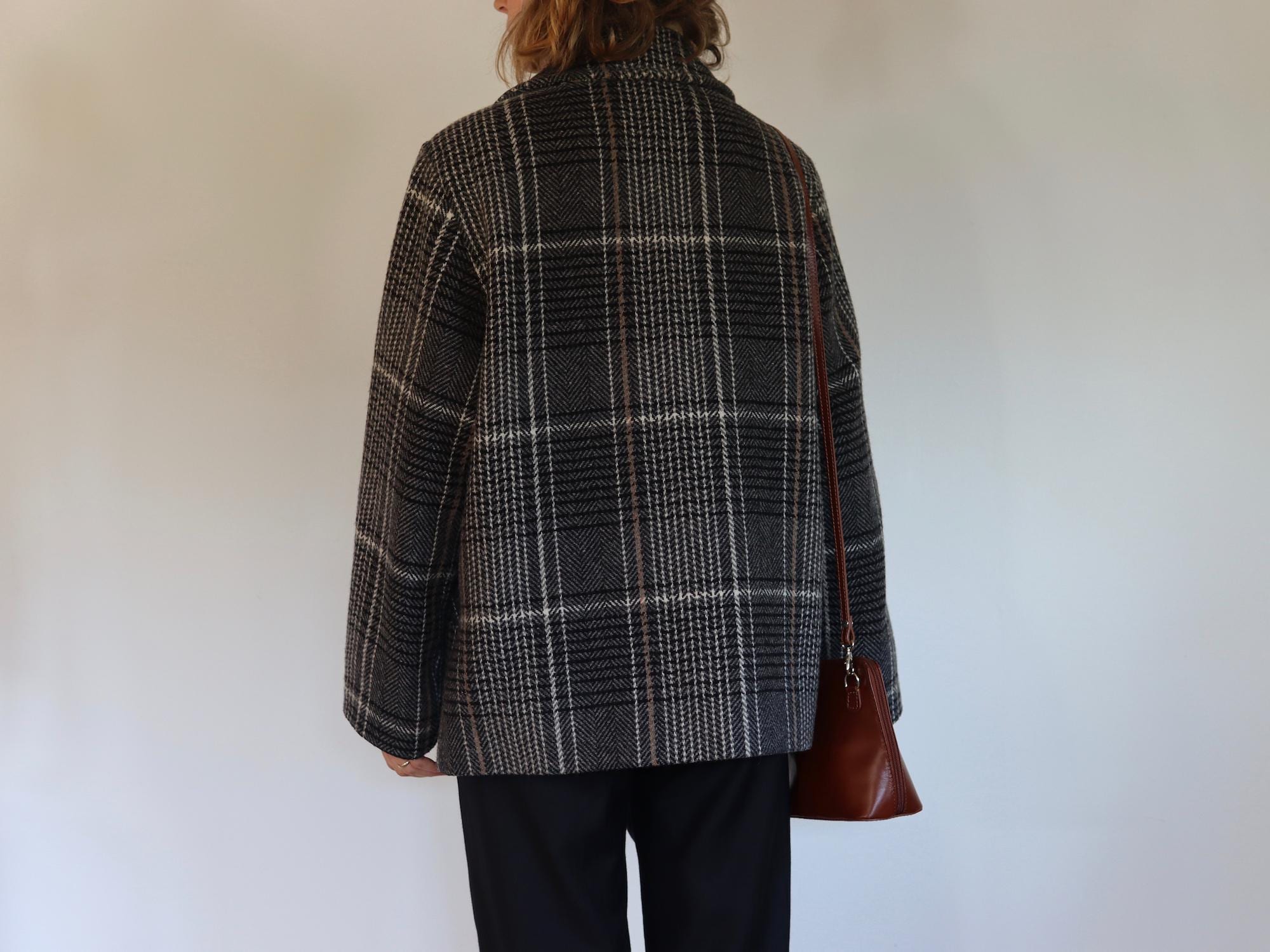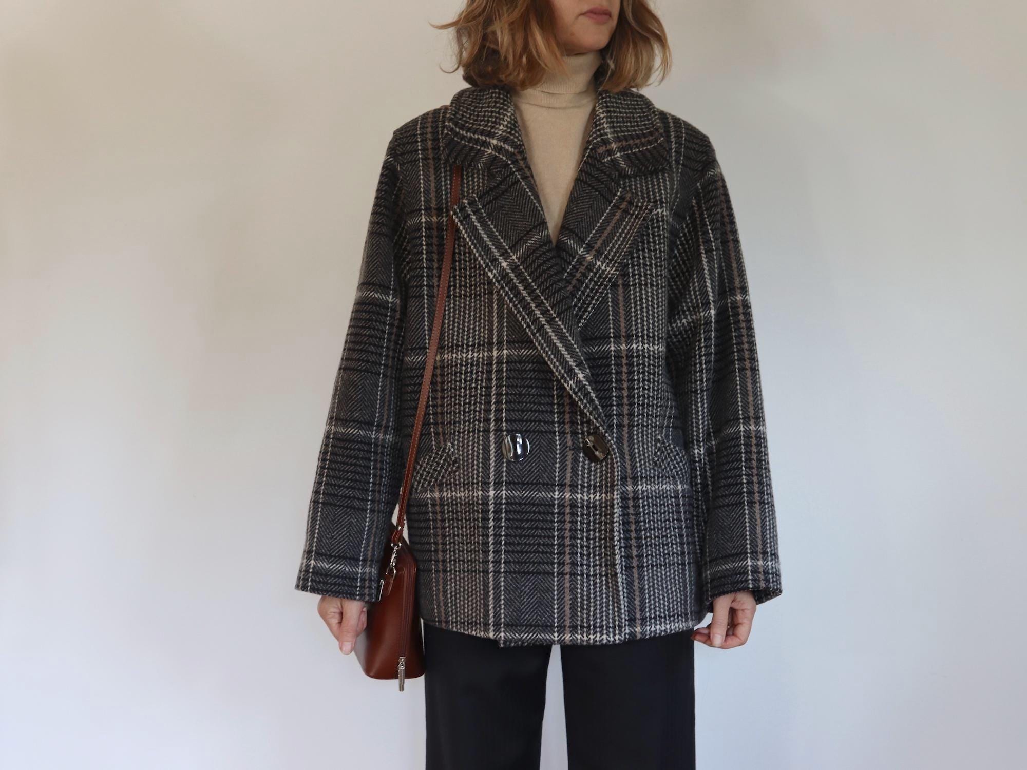 Vintage Oversized St Michael Checked Herringbone Wool Pea Coat,