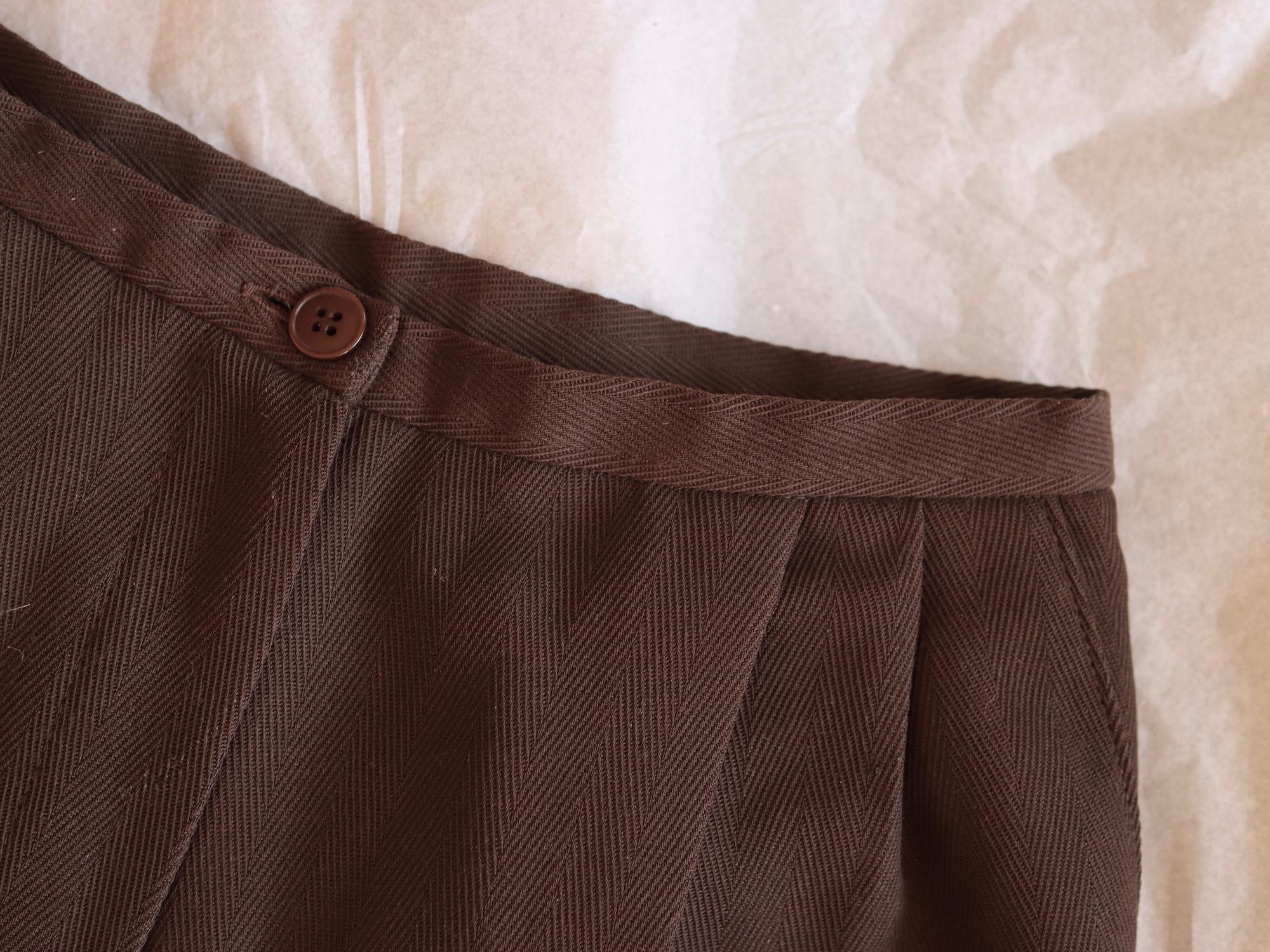Unfortunately these trousers are too baggy in the crotch. The size (length of inside seam, waist) are good so it’s odd that the crotch hangs loose. One for the seamstress