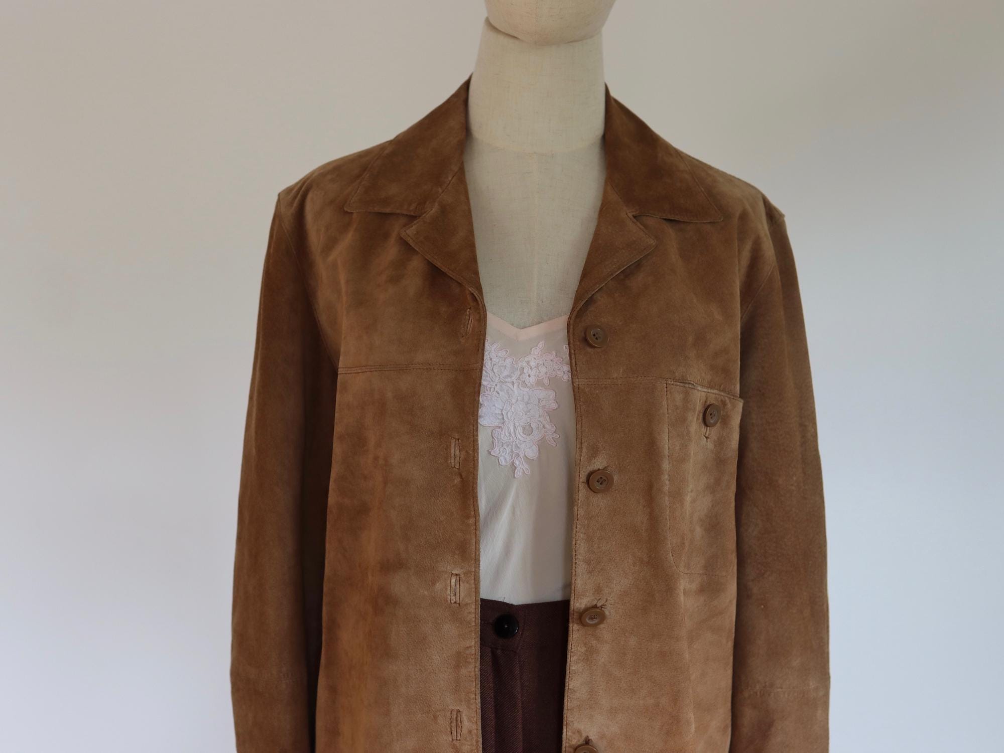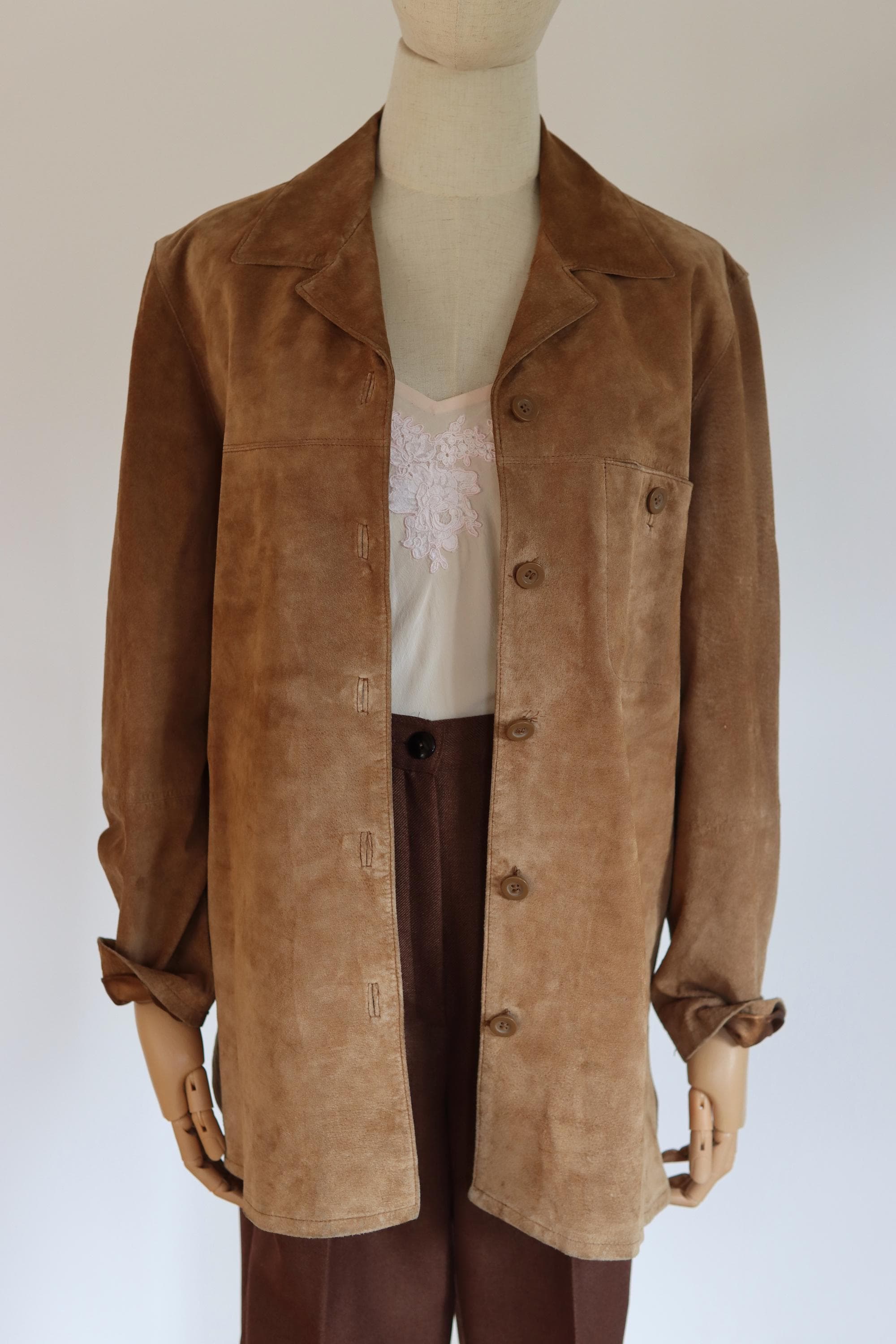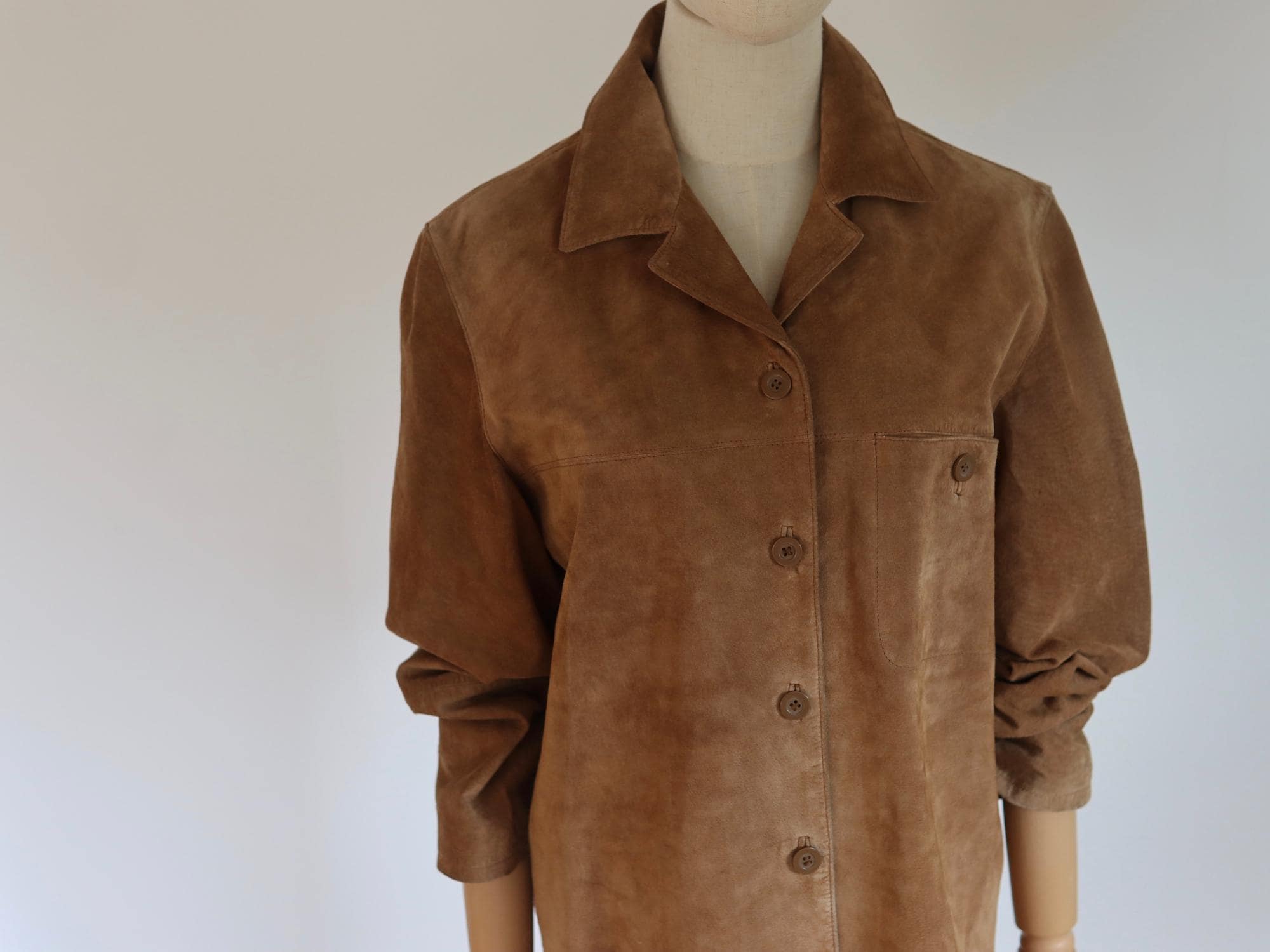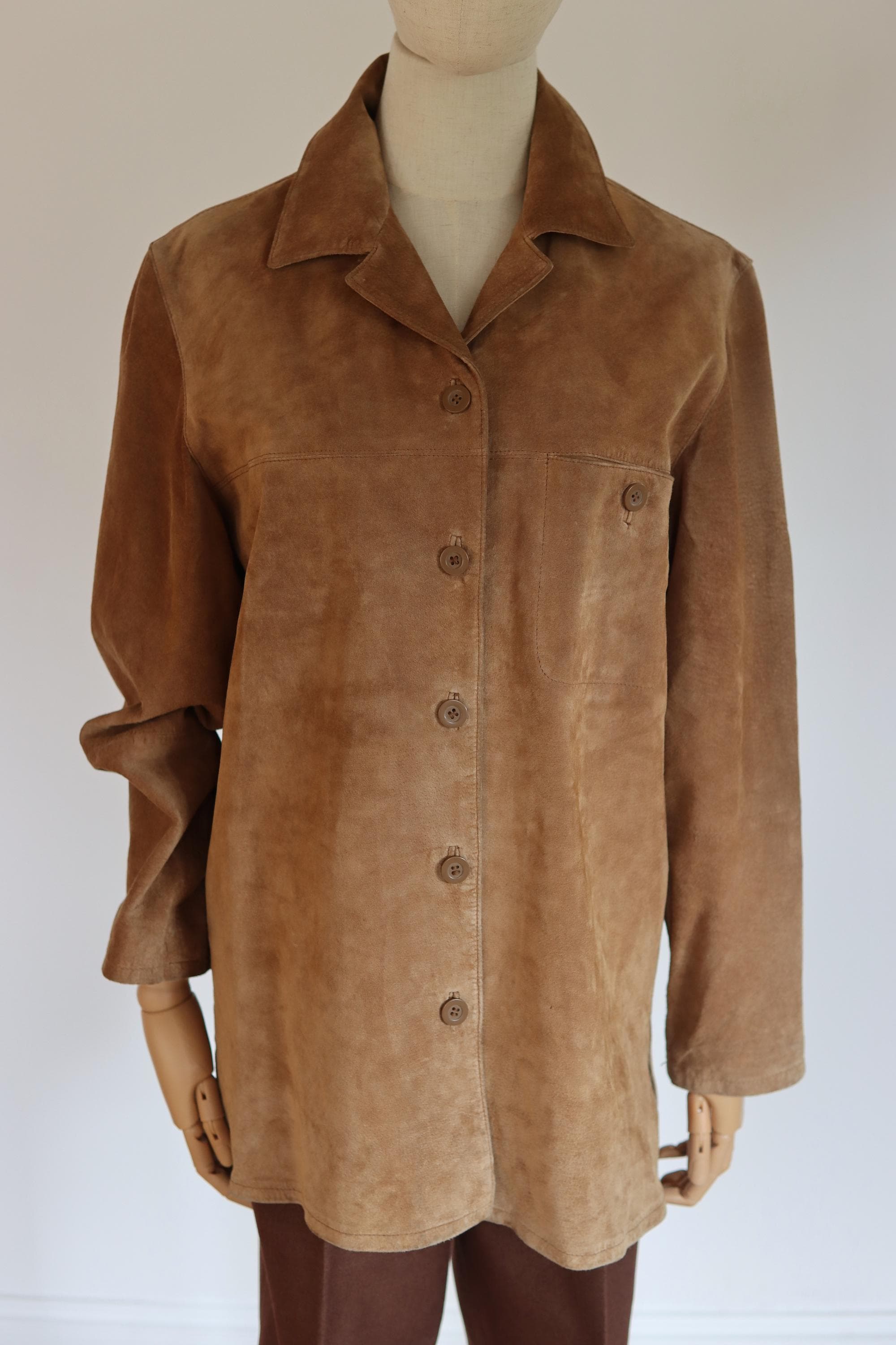 Soft suede shirt with breast pocket.
