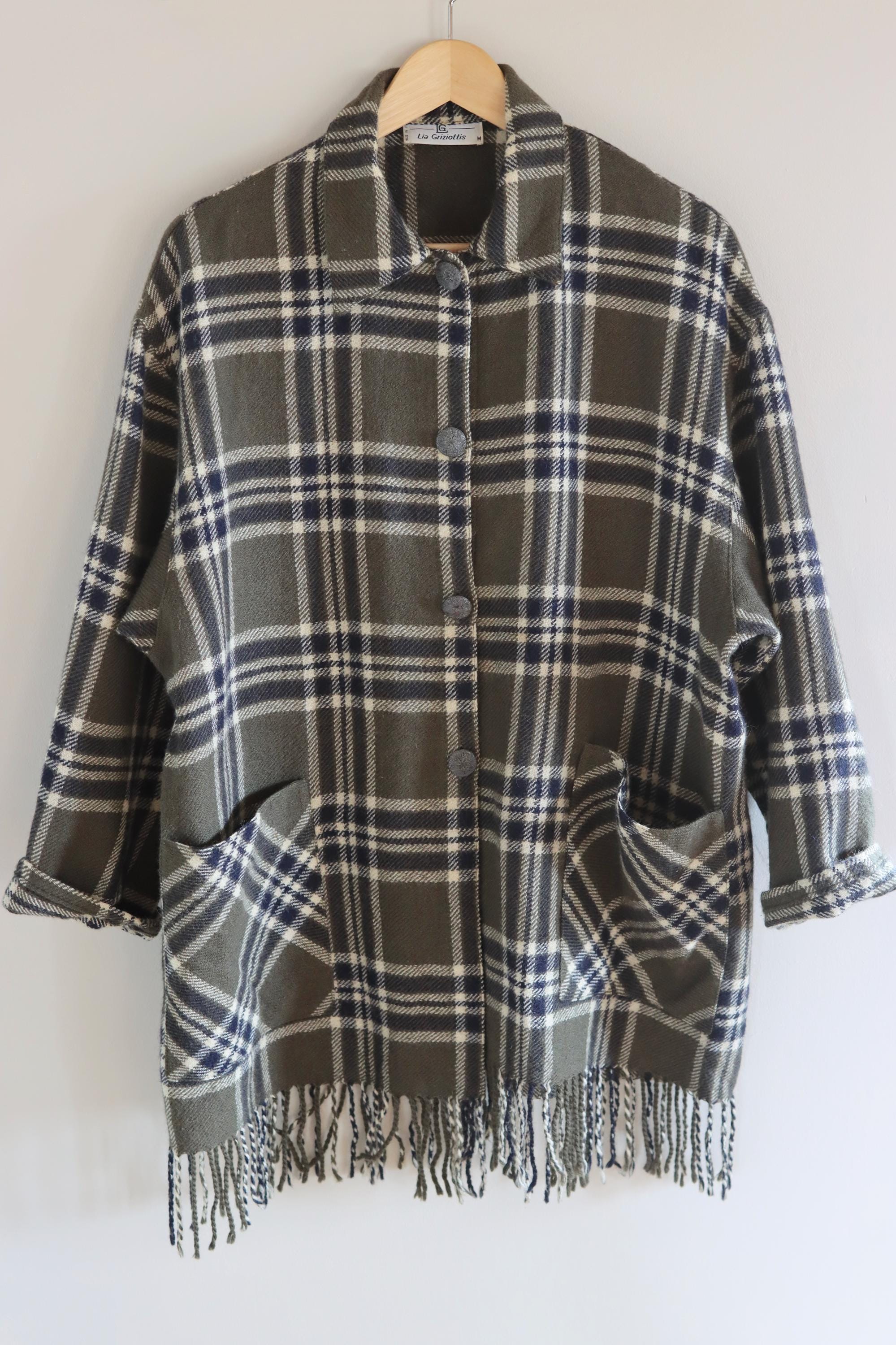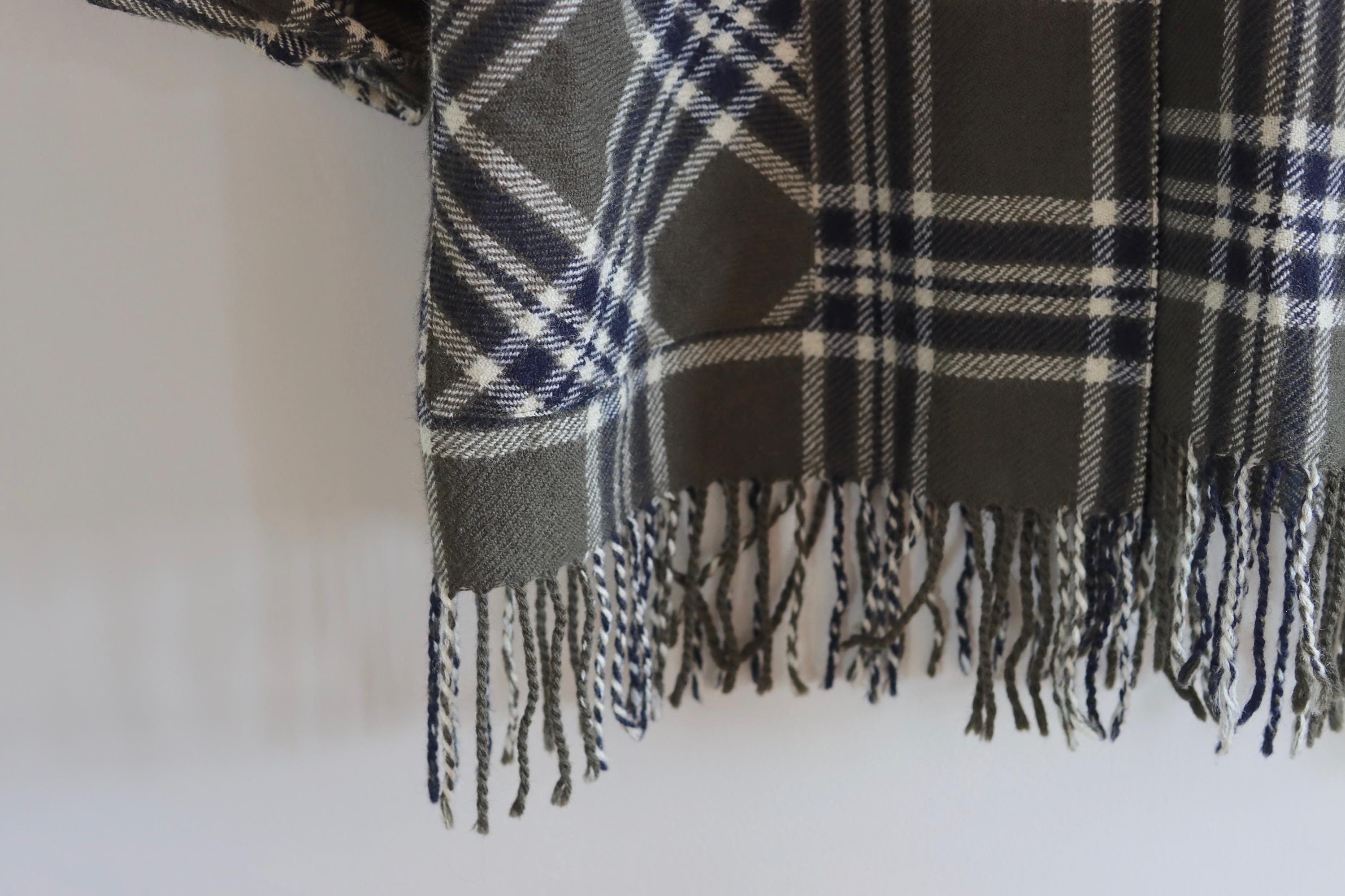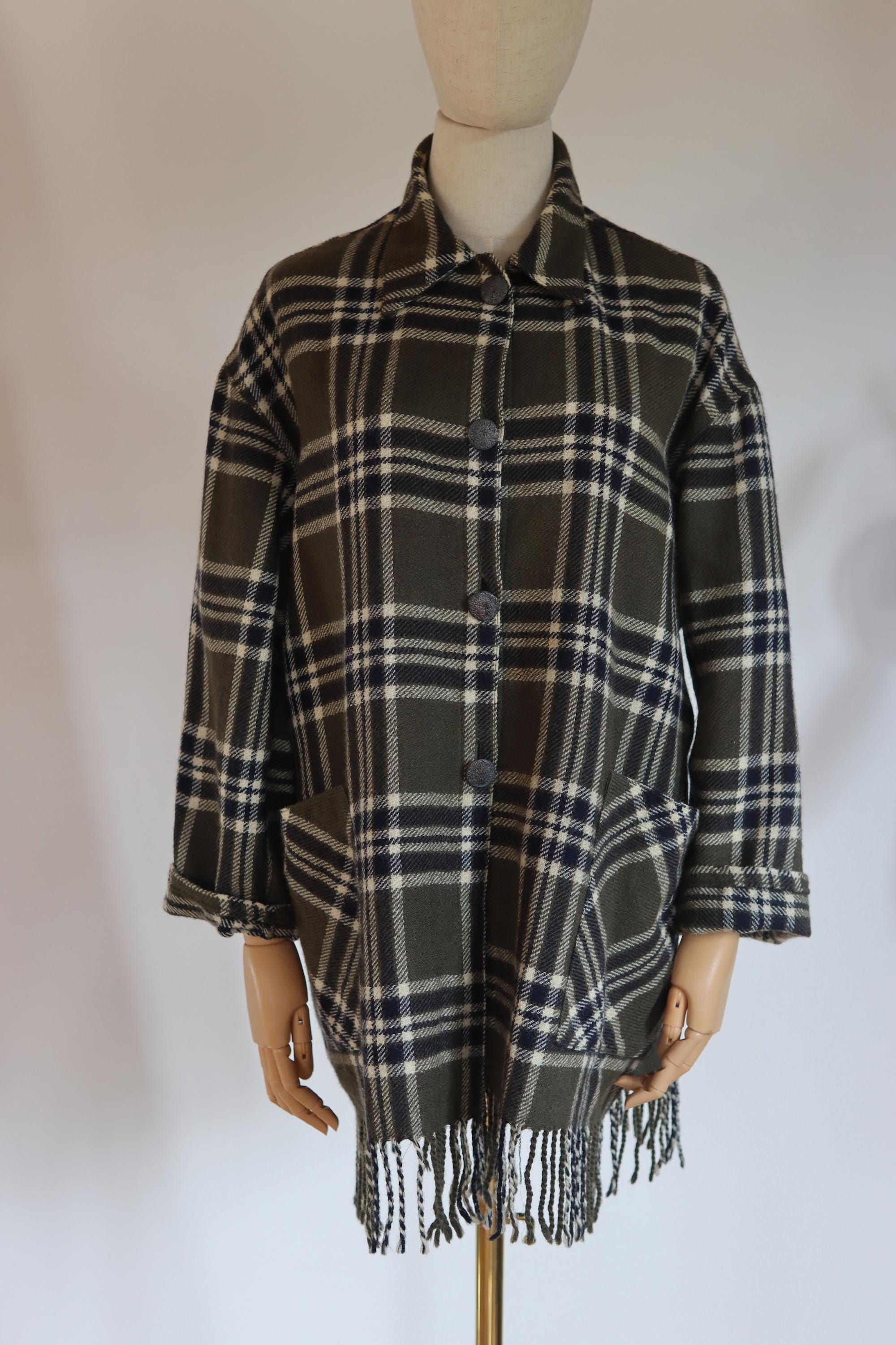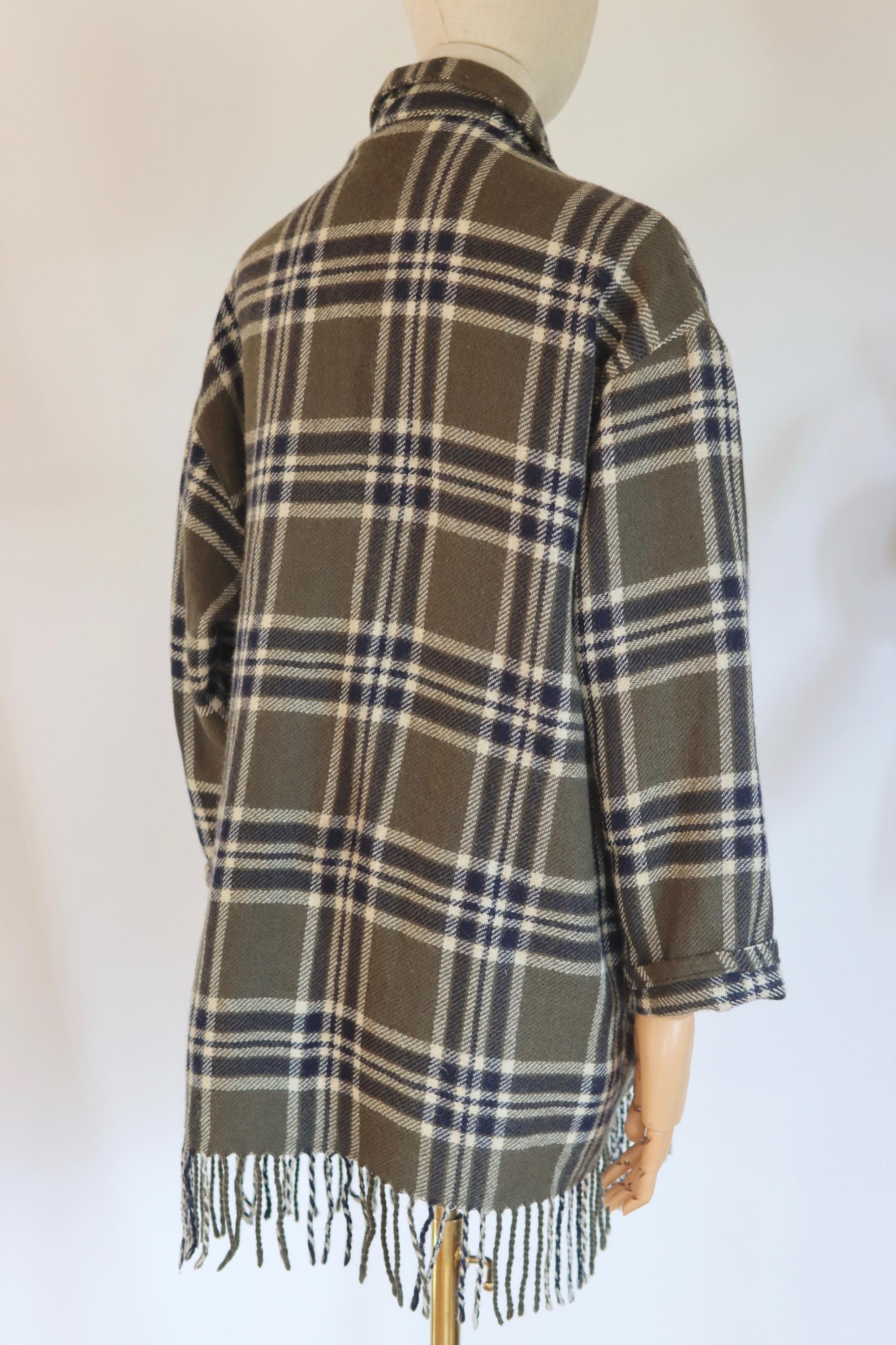 Plaid wool blanket coat with fringing which makes a perfect Autumn layer.