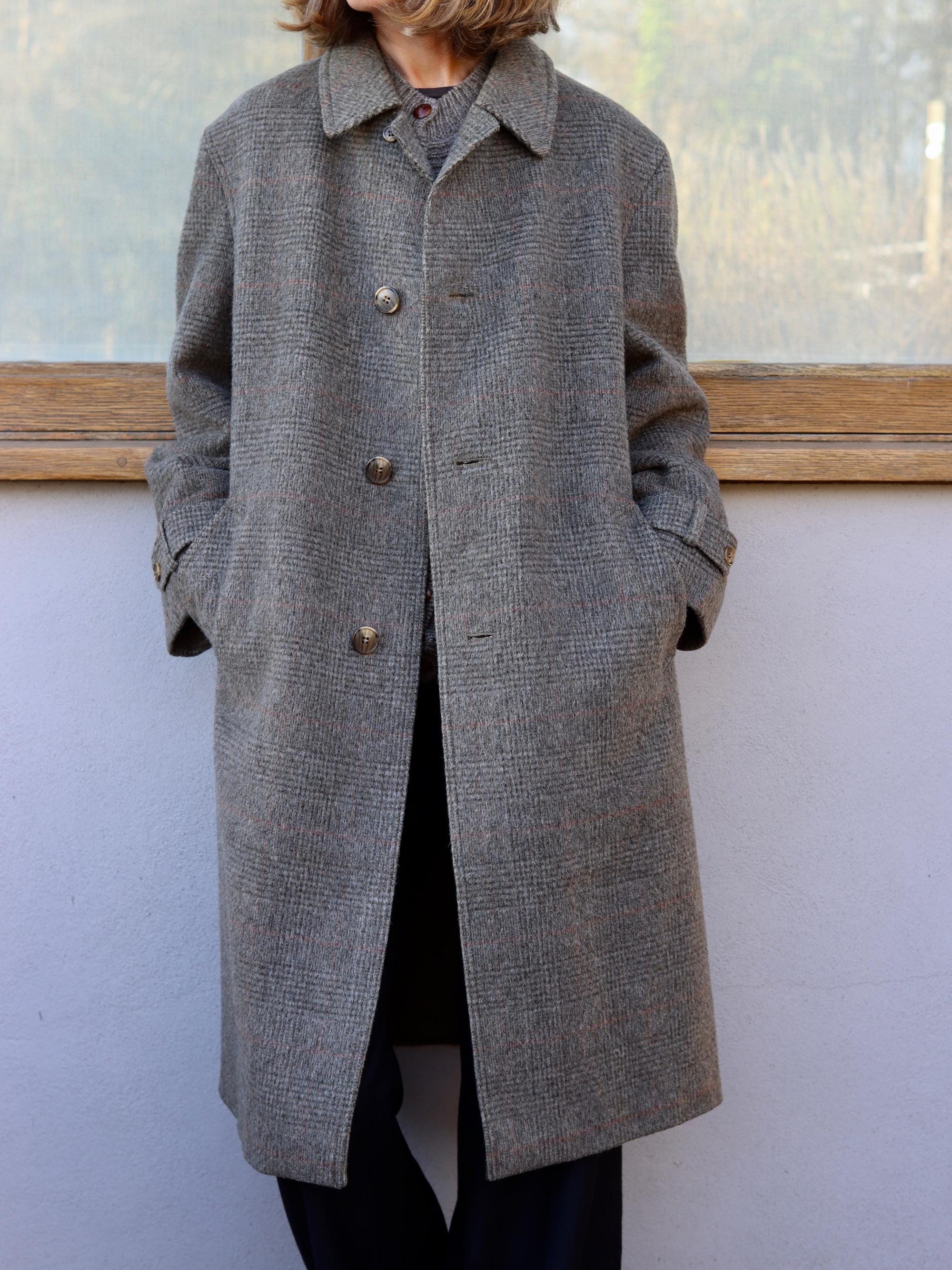 Beautiful single-breasted grey wool overcoat with khaki green lining and two inside pockets by German label Loden-Frey. The coat is in excellent vintage condition.
