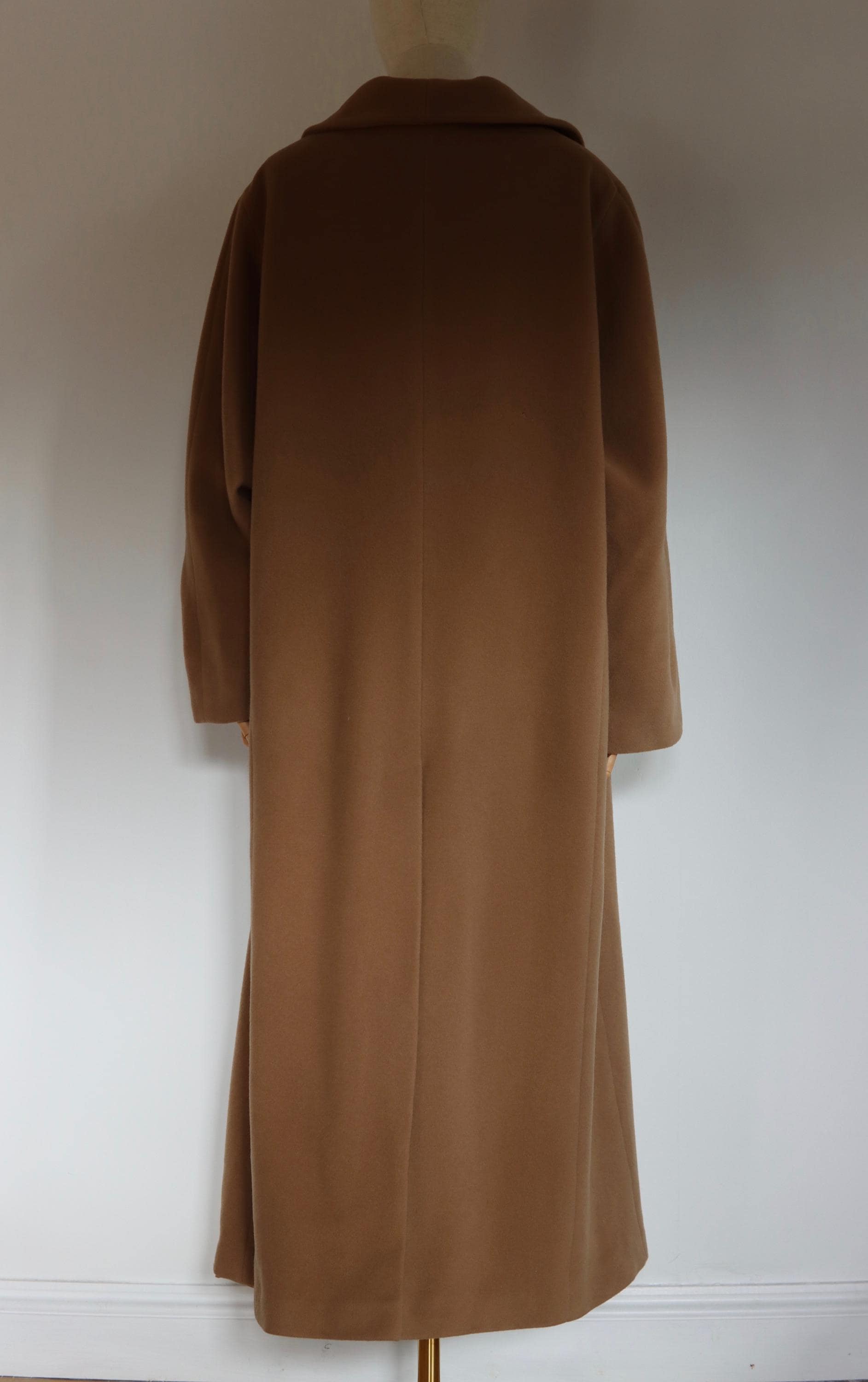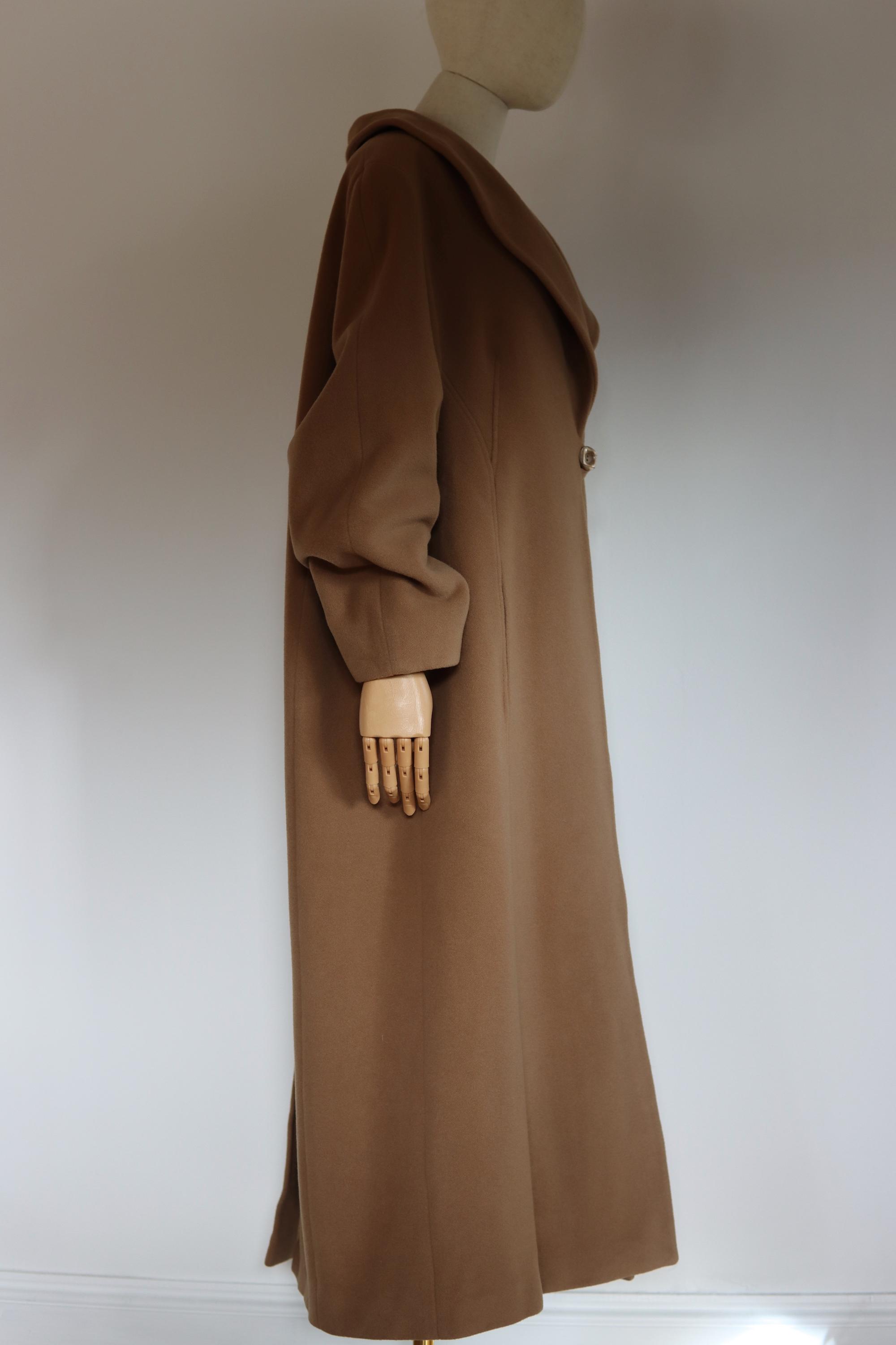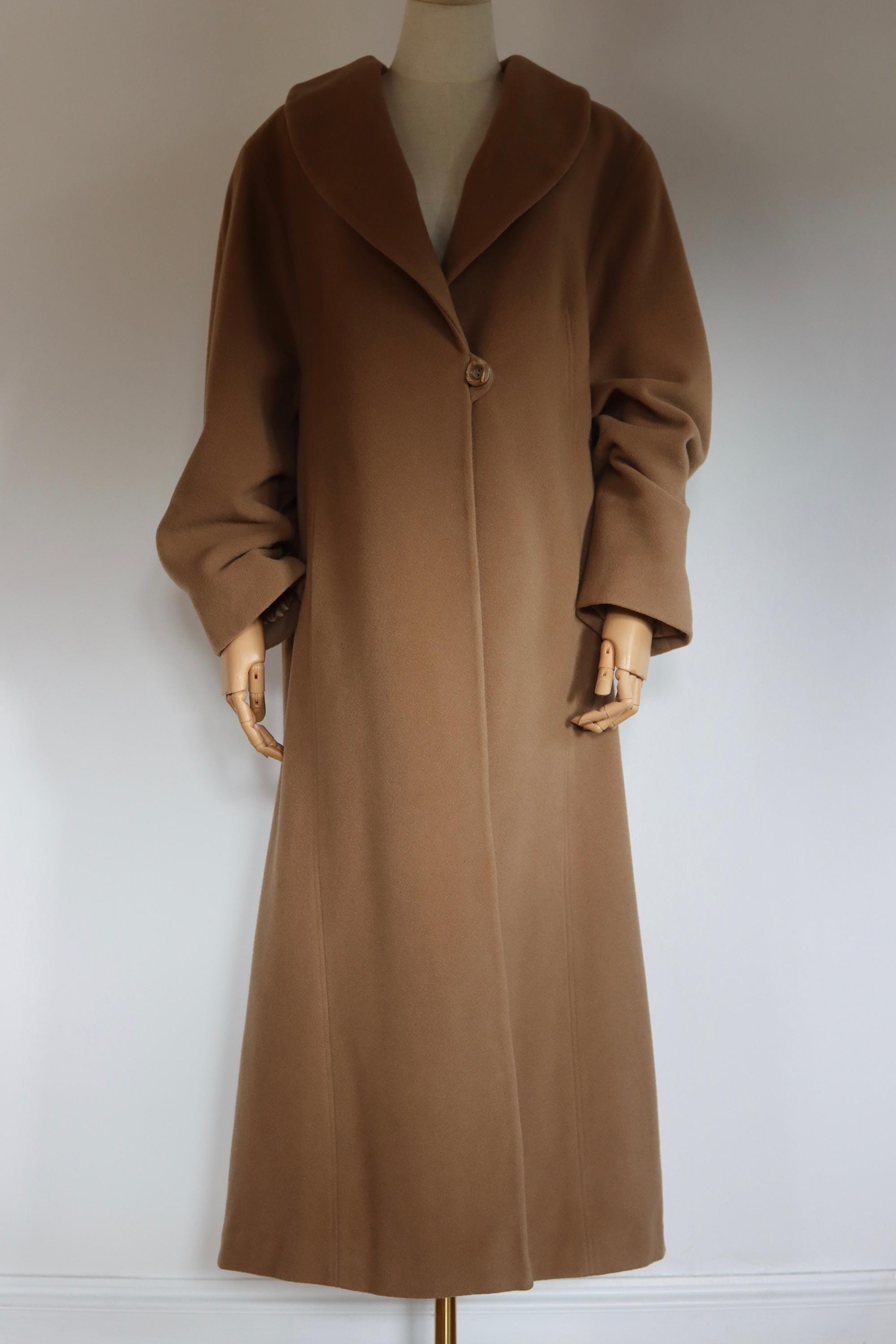 Luxury wool maxi coat with single button fastening and flat front pockets and large shawl collar.