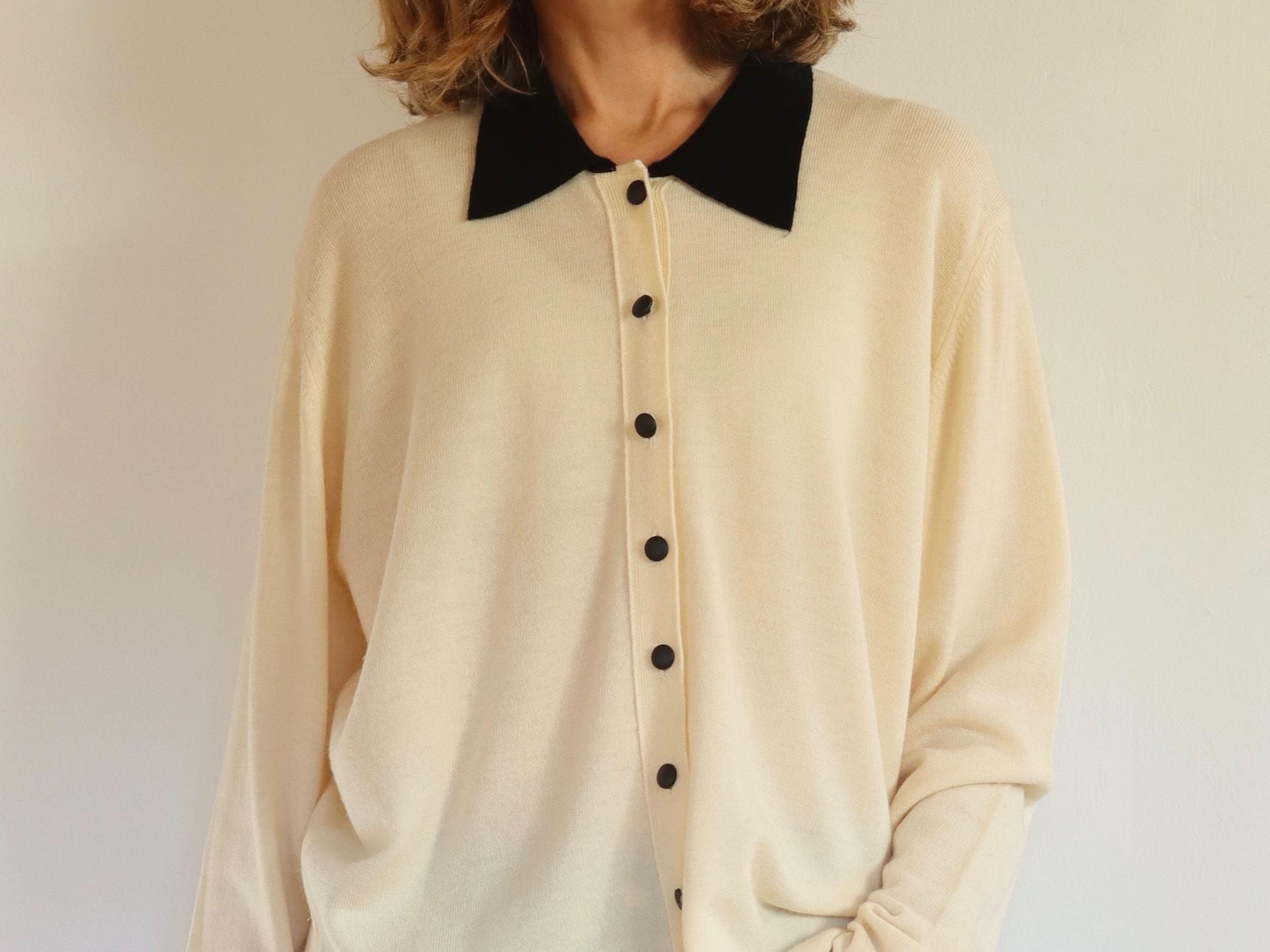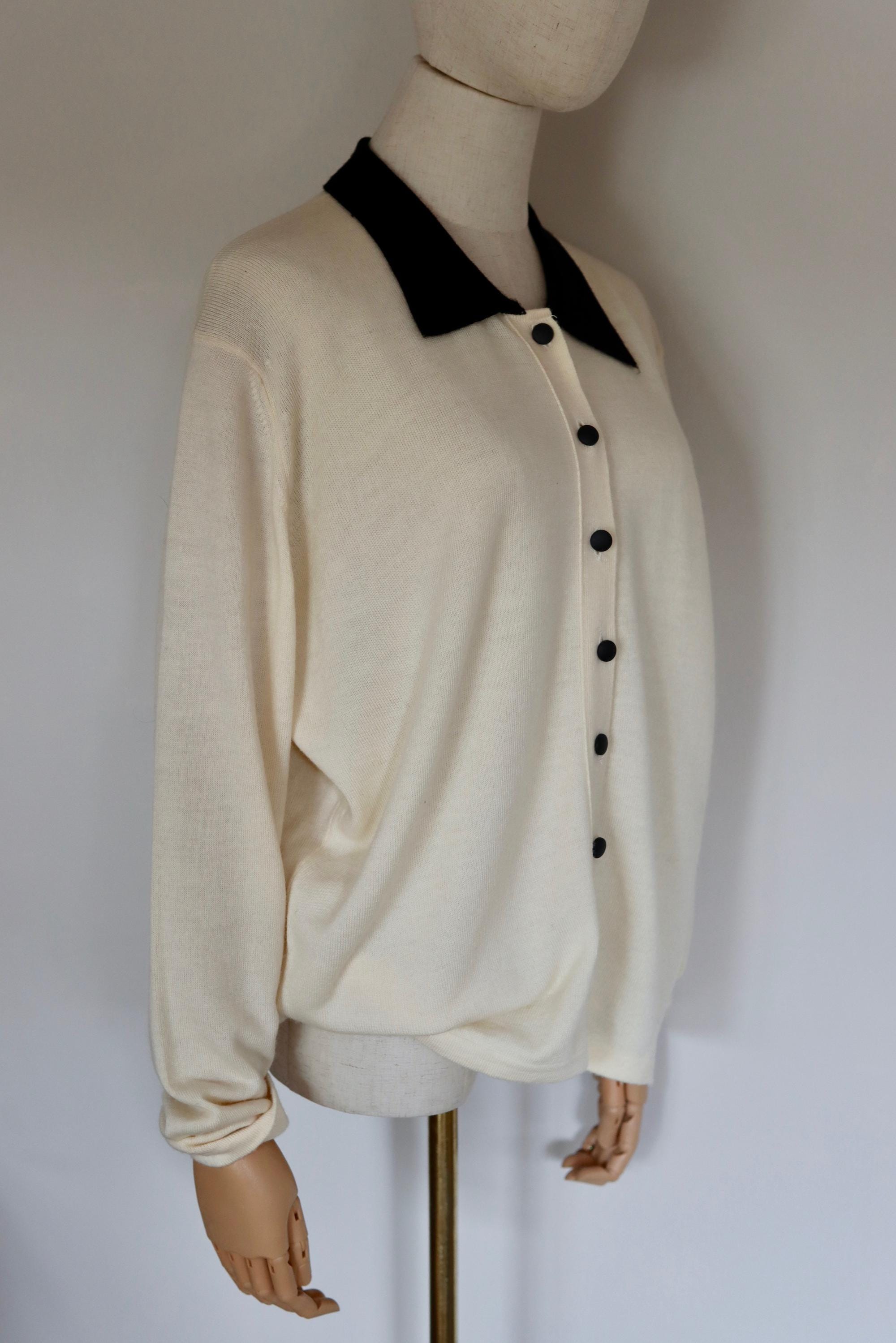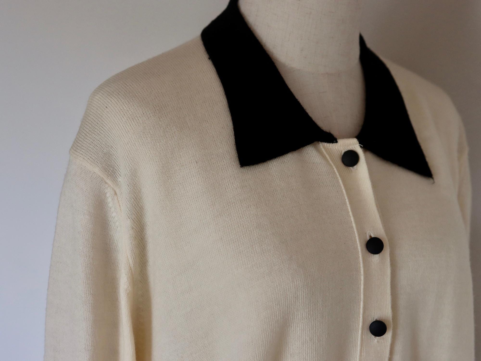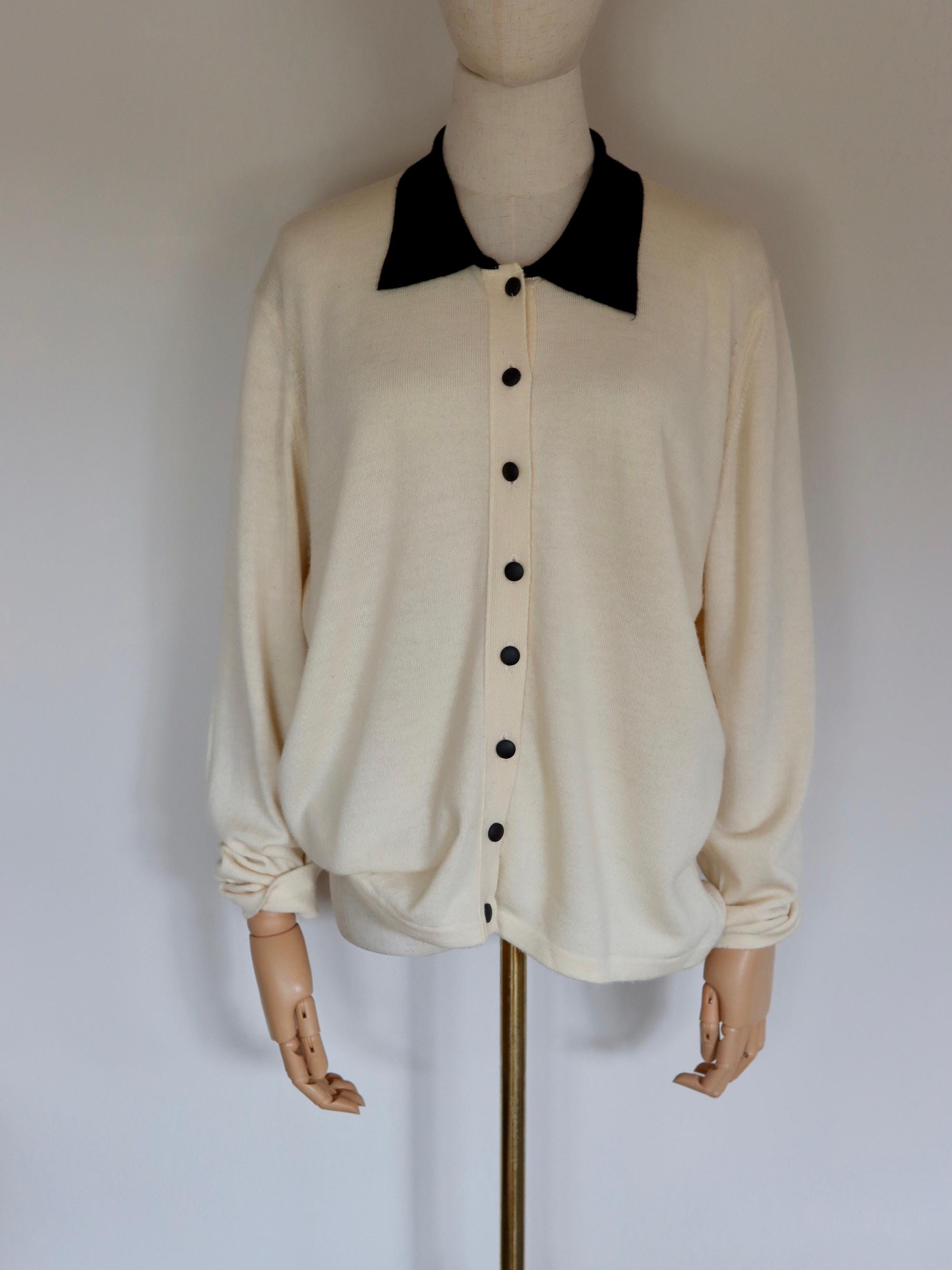 Pure new wool cream and black two tone cardigan by vintage St Michael with black covered buttons,