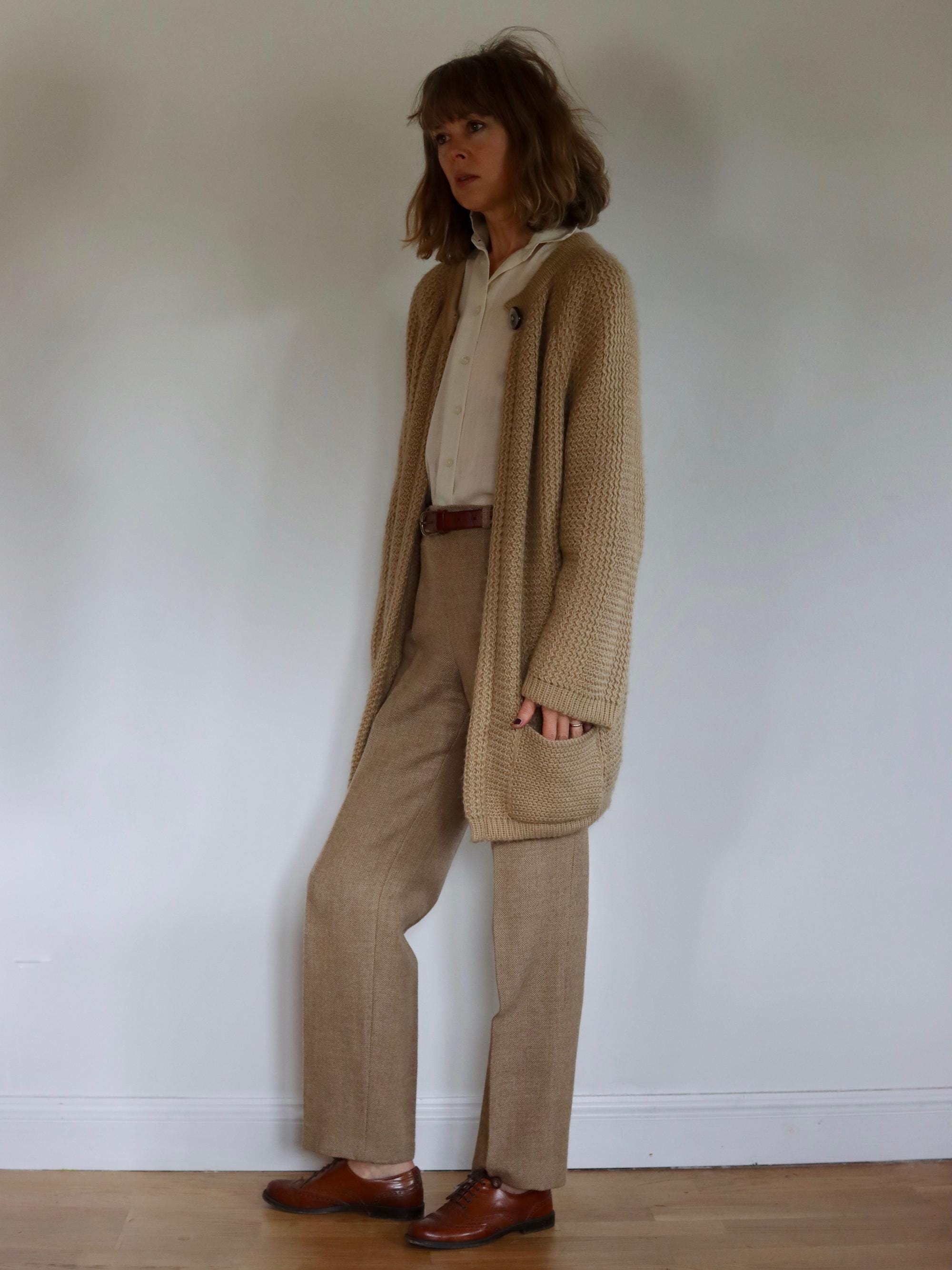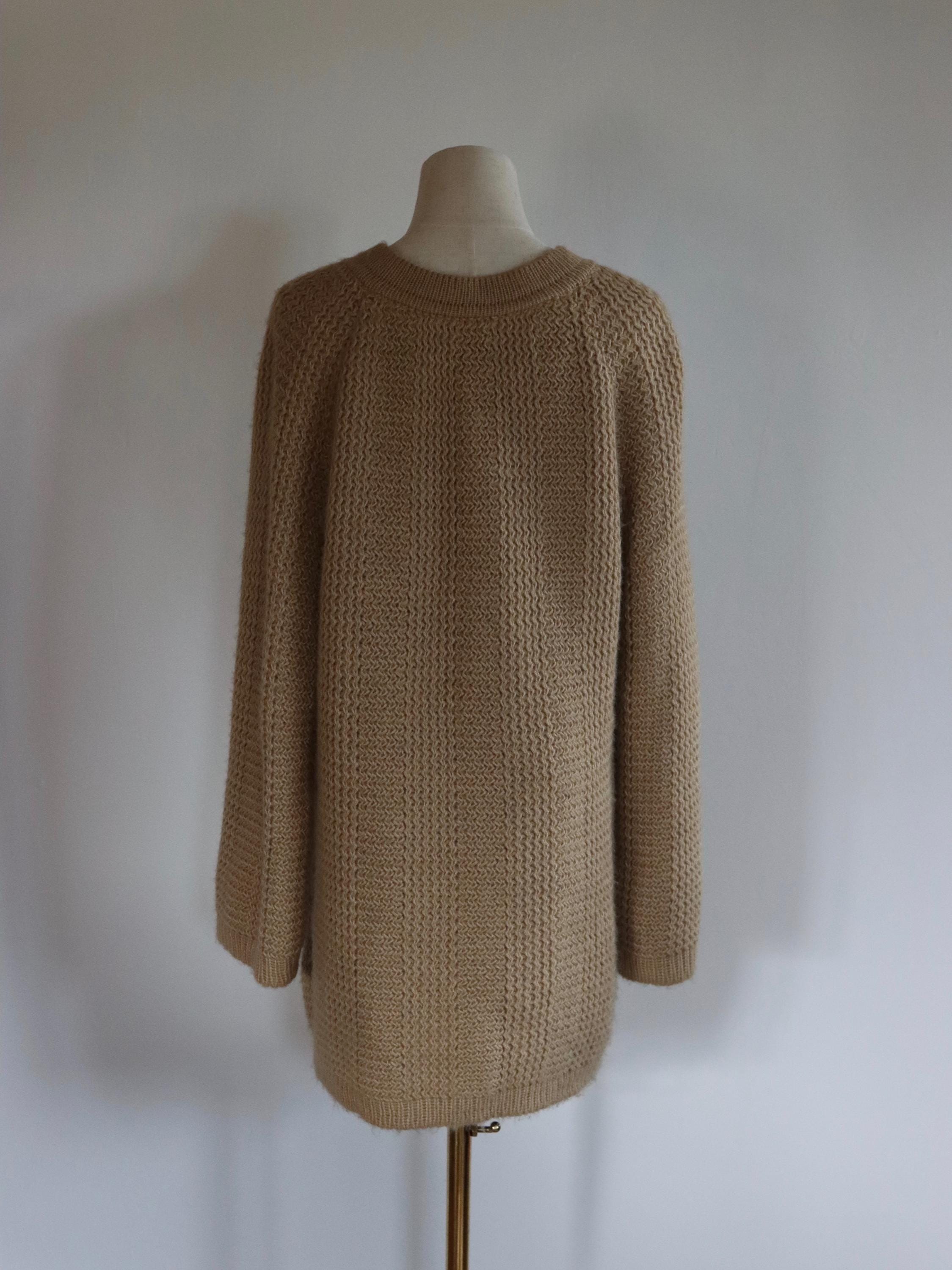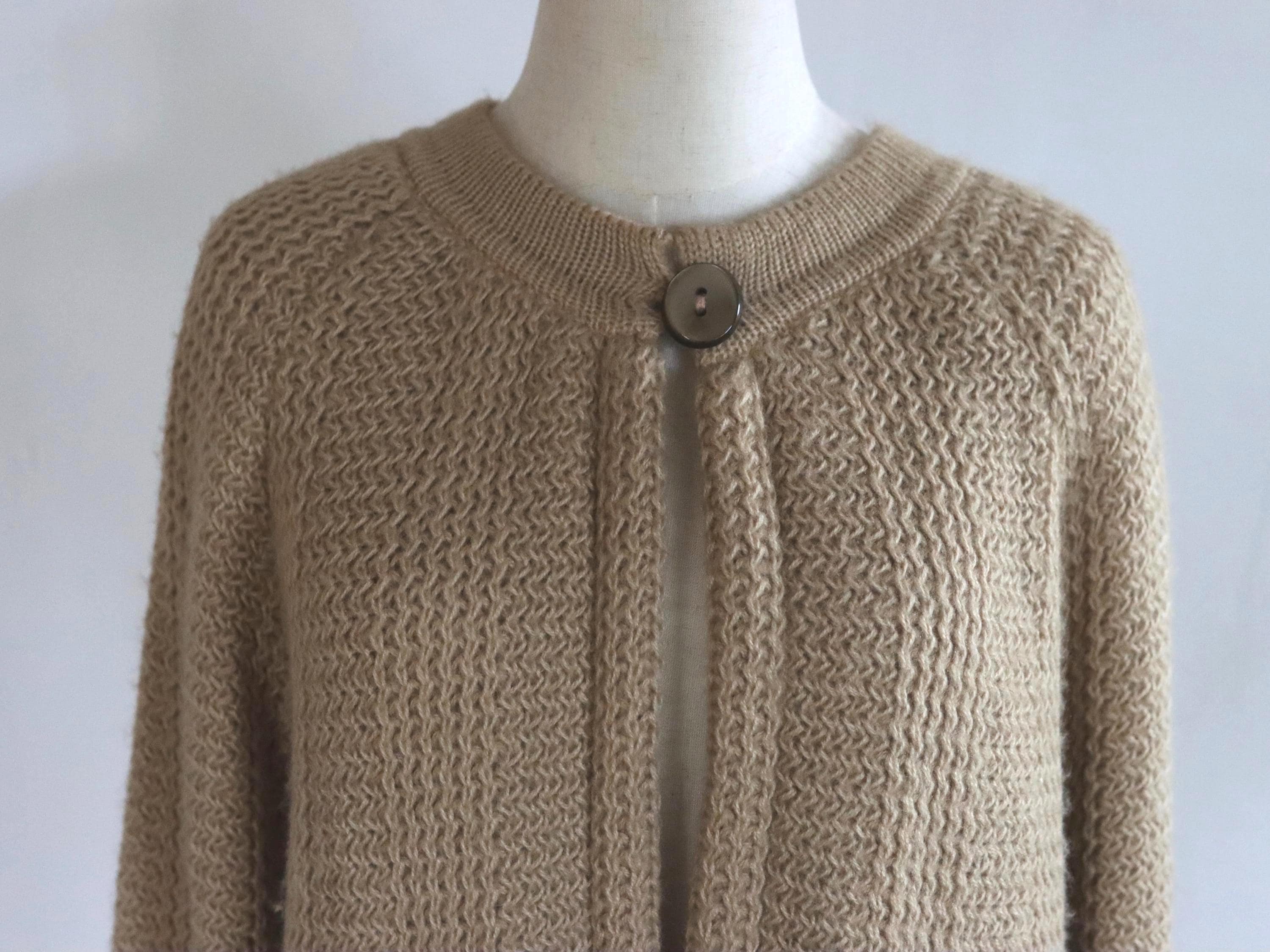 Oversized Long Open Weave Knit Handmade Cardigan With One Button Fastening and Pockets.