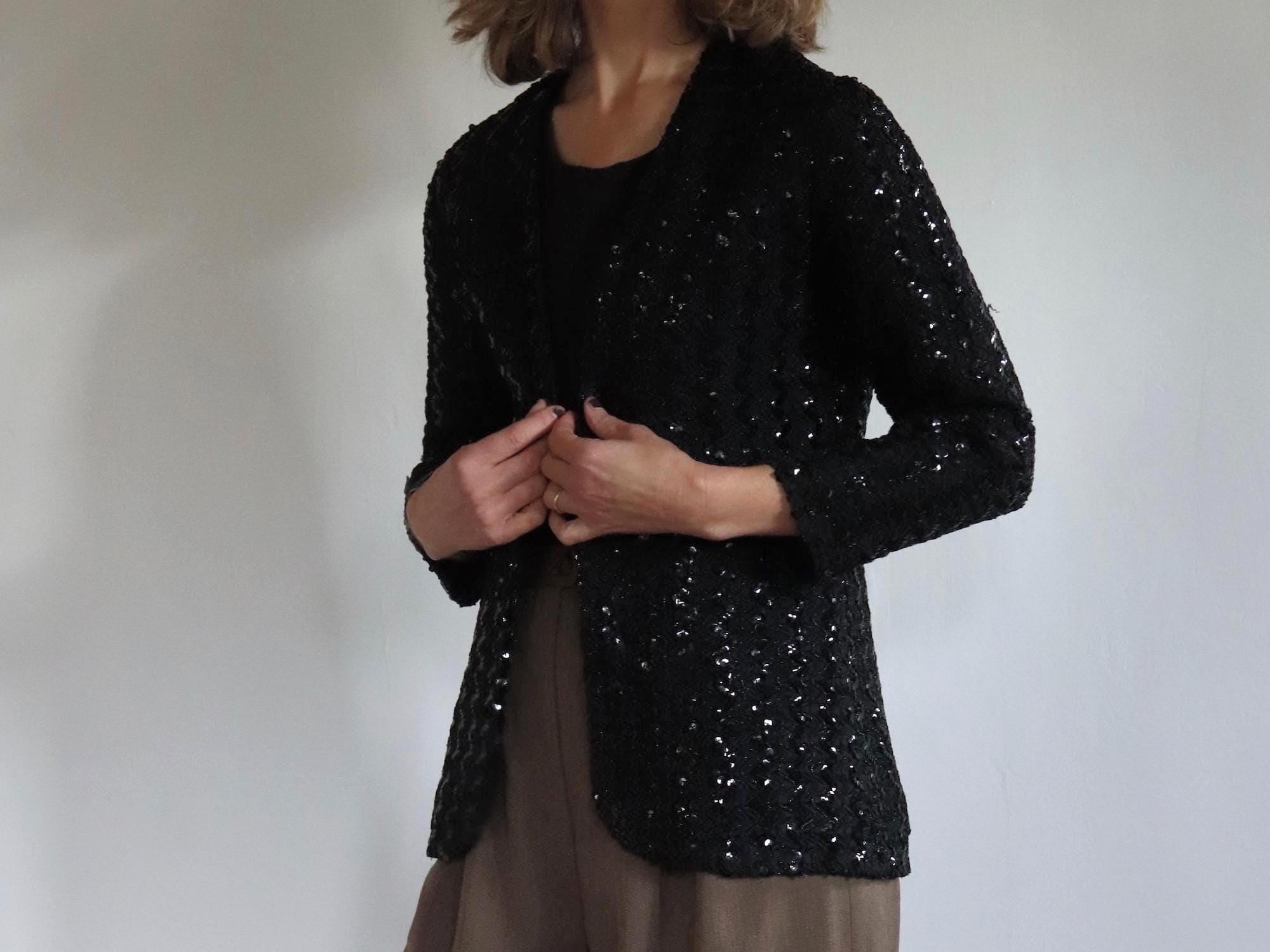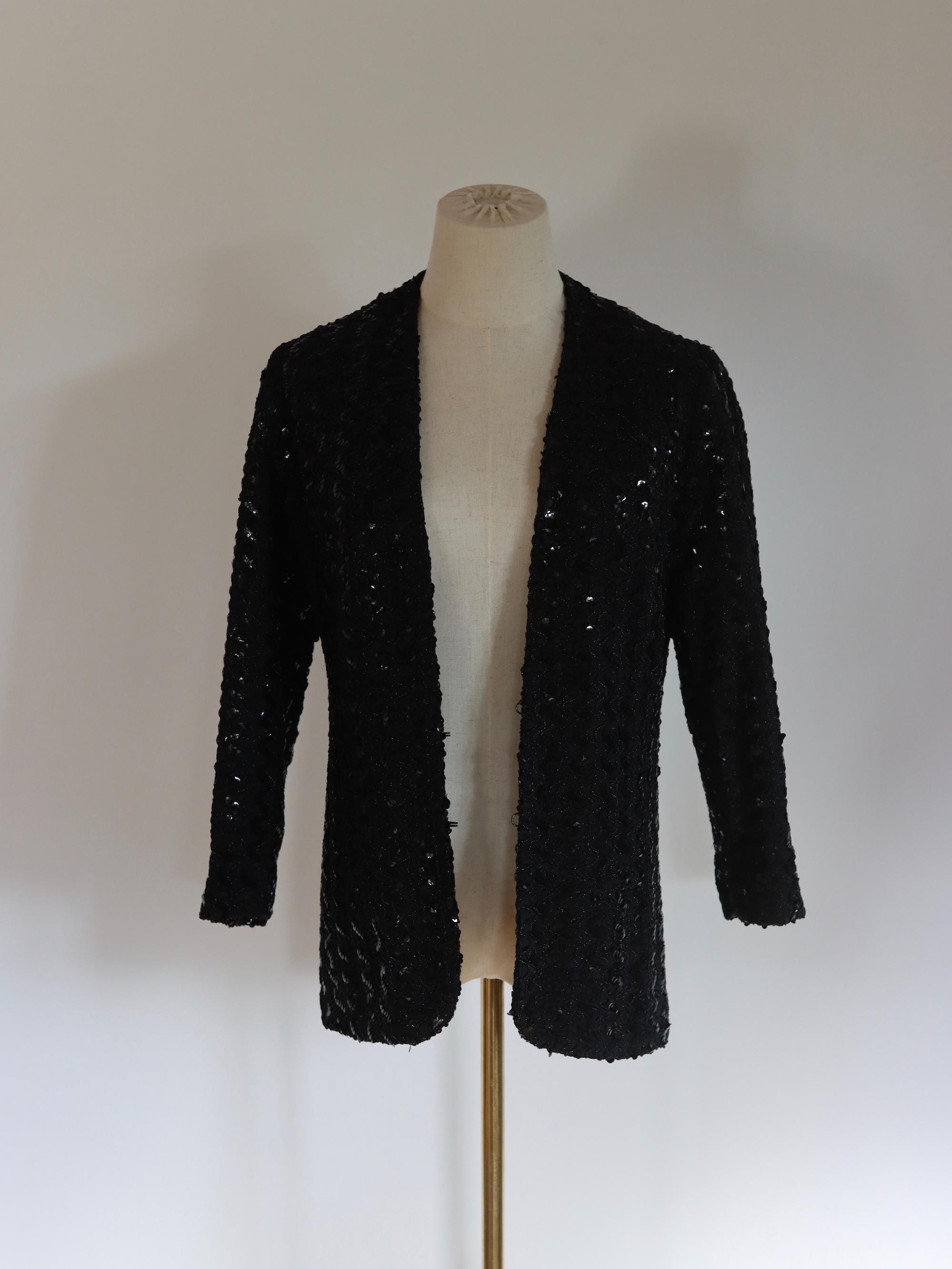 Vintage Hildebrand beaded cardigan with a hook and eye front fastening.