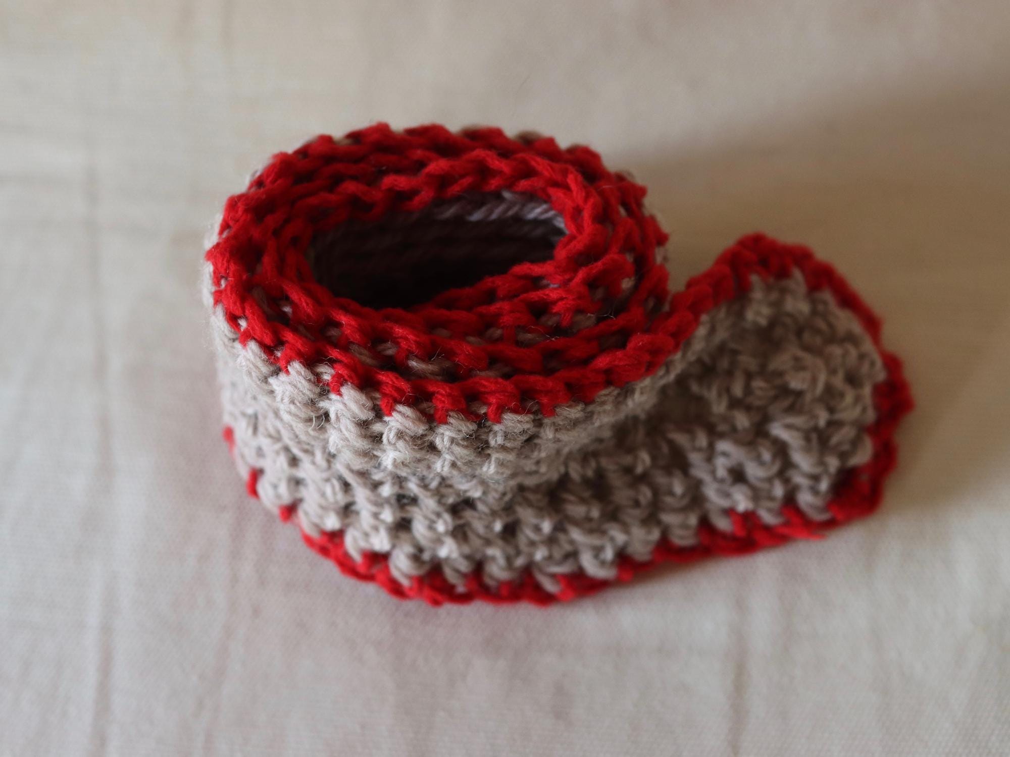 This scarf is made using a ball of mixed wool and acrylic blend