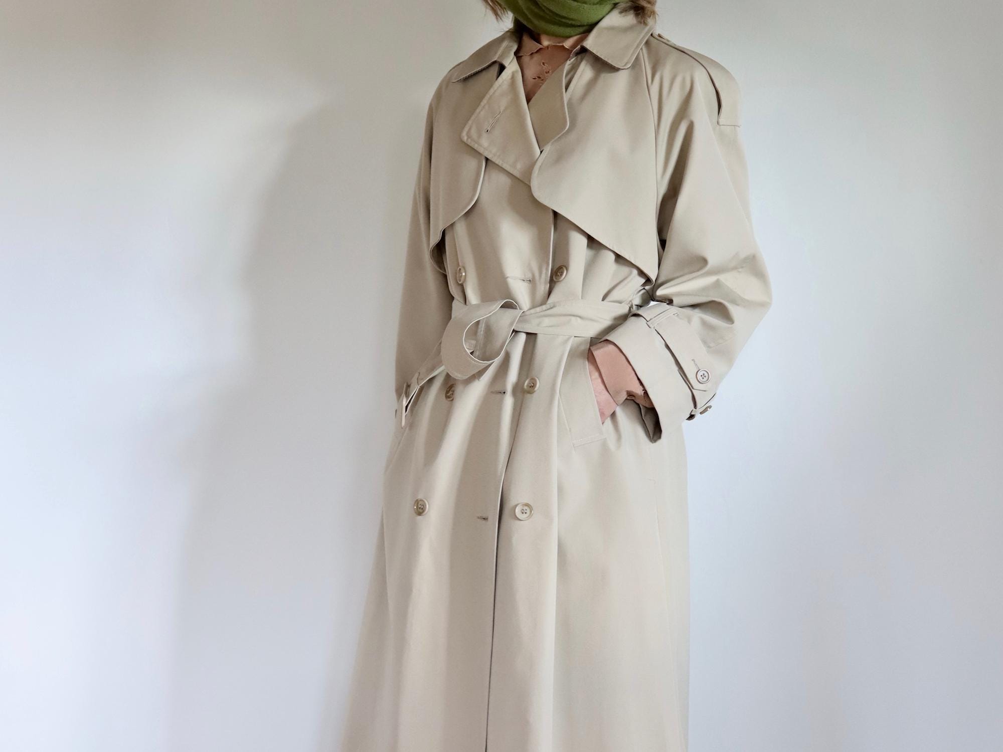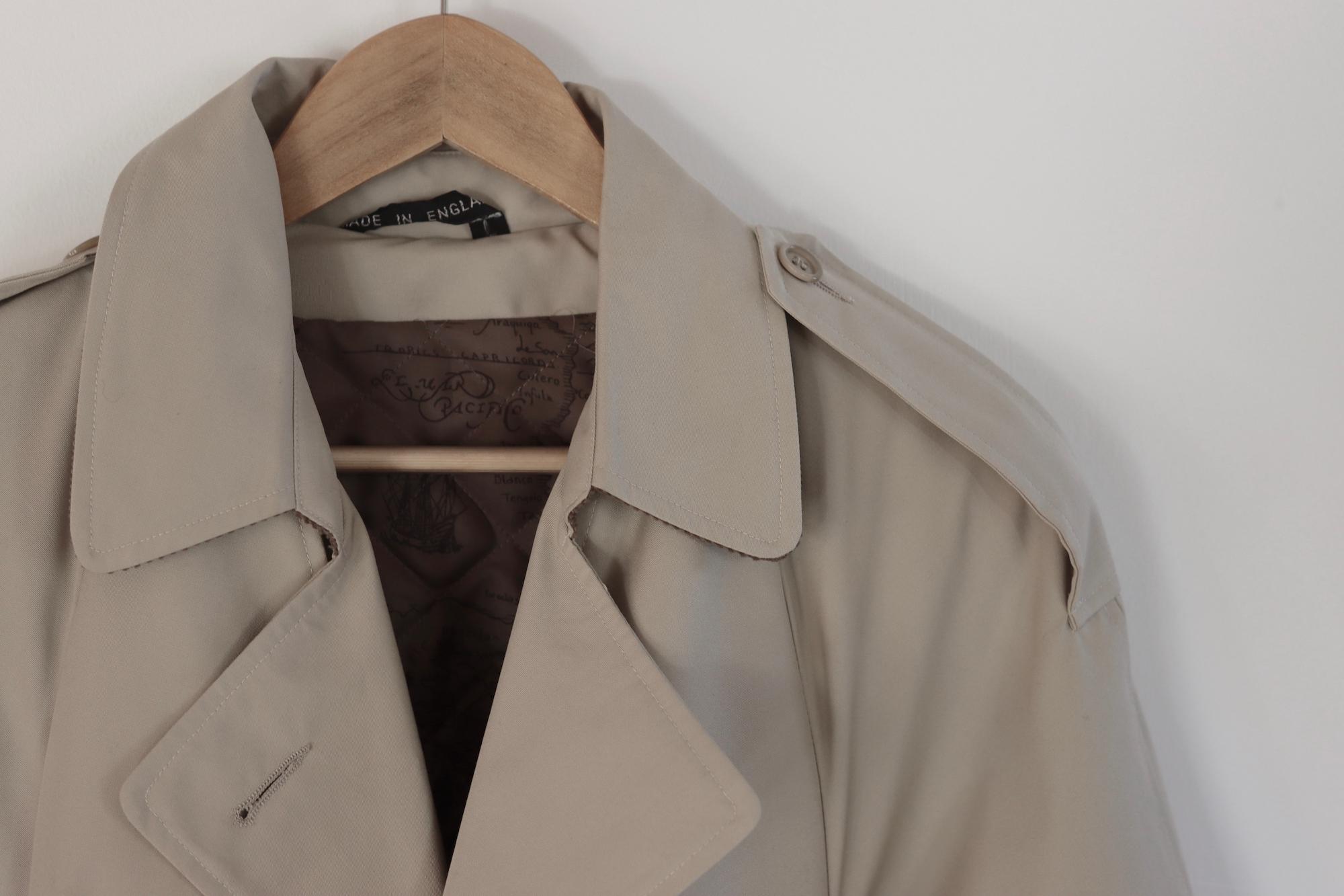 Czarina beige trench coat with all the trench details and matching belt. The lovely coat also has fine corduroy under the collar so when you pop the collar its a nice detail and theres an Africa print lining.