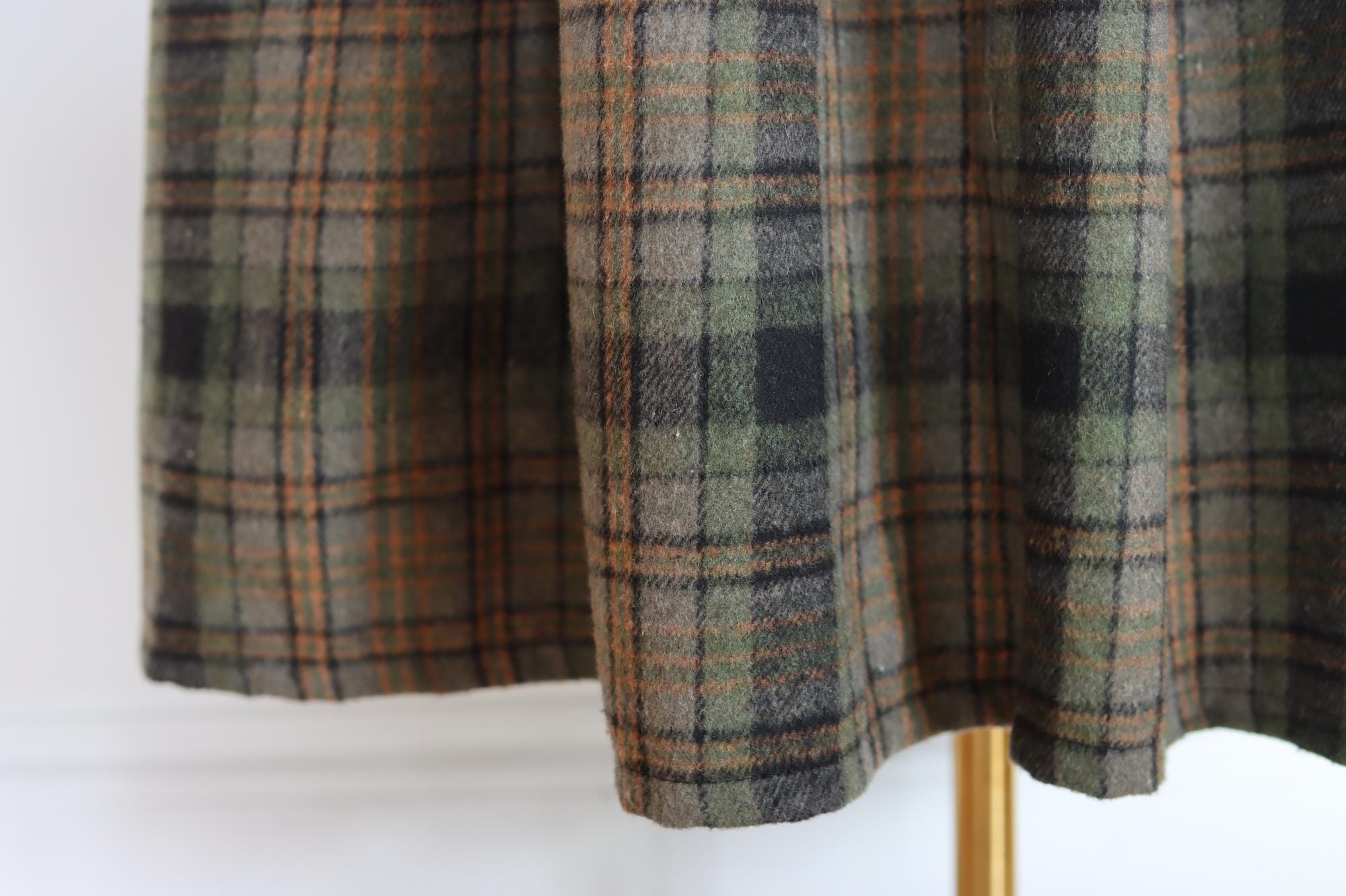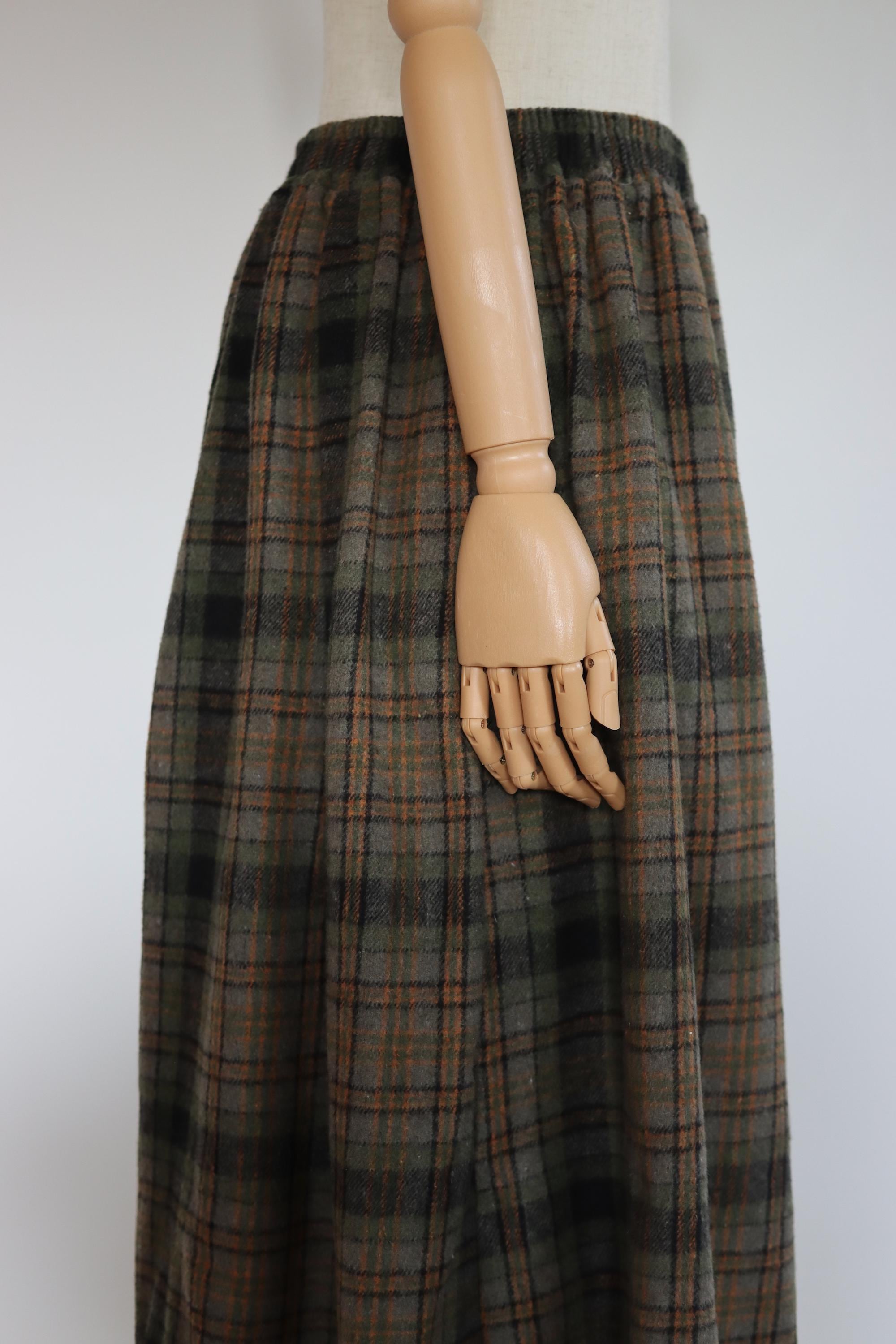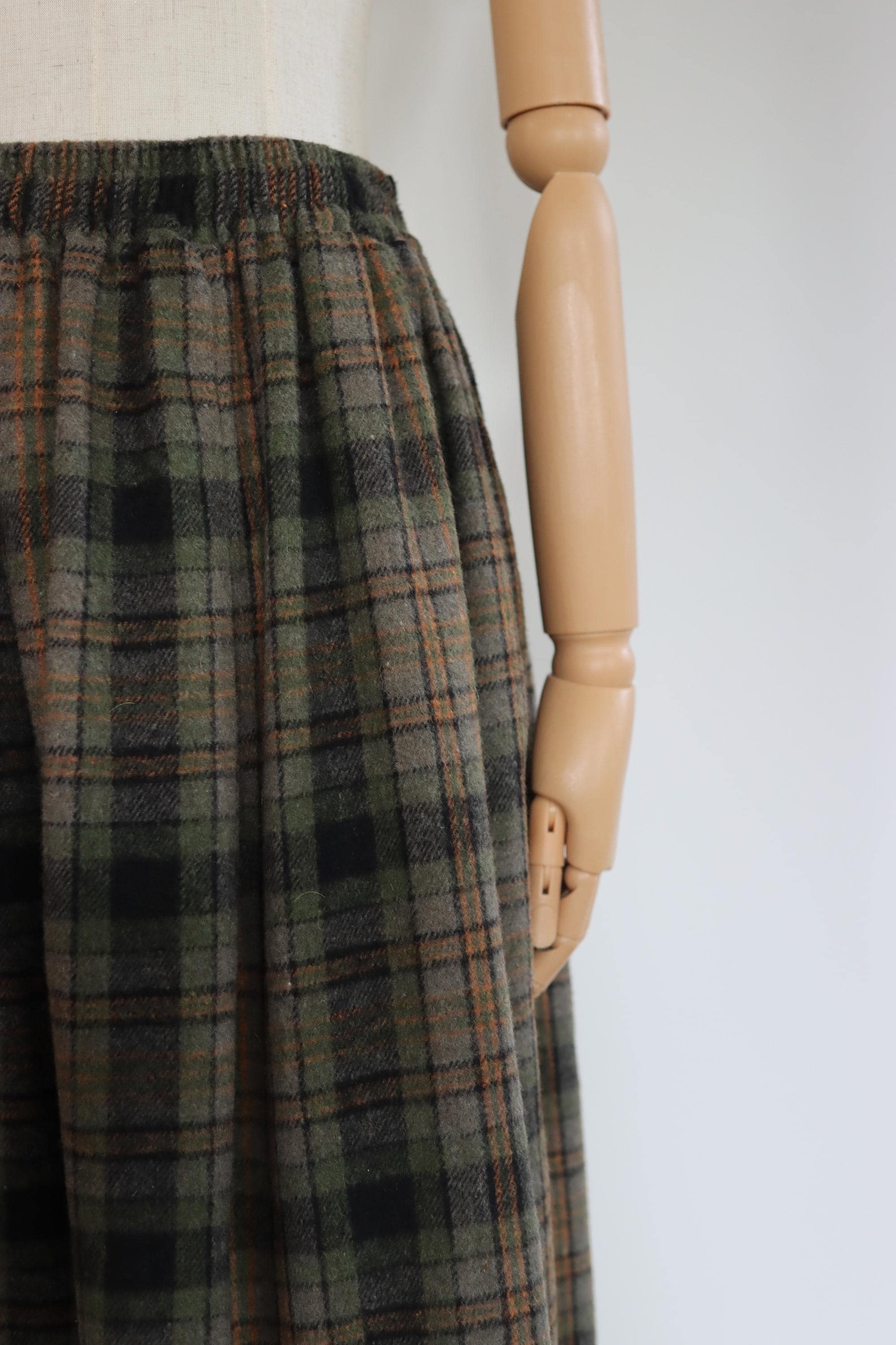 Lovely wool blend plaid midi skirt in earthy tones with two side pockets, midi (below the knee length).